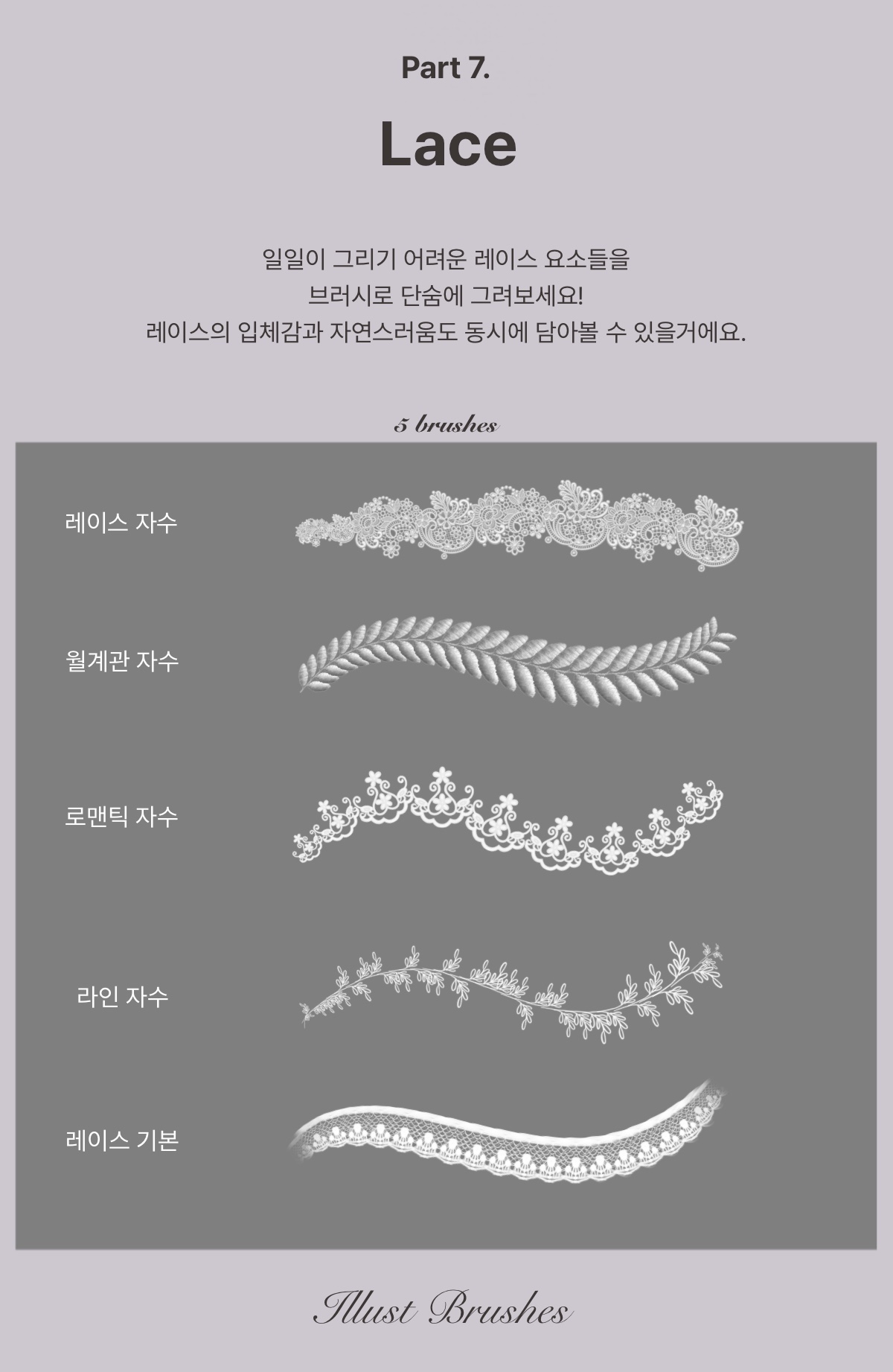 사실적인 레이스 디테일이 특징인 브러시 입니다.