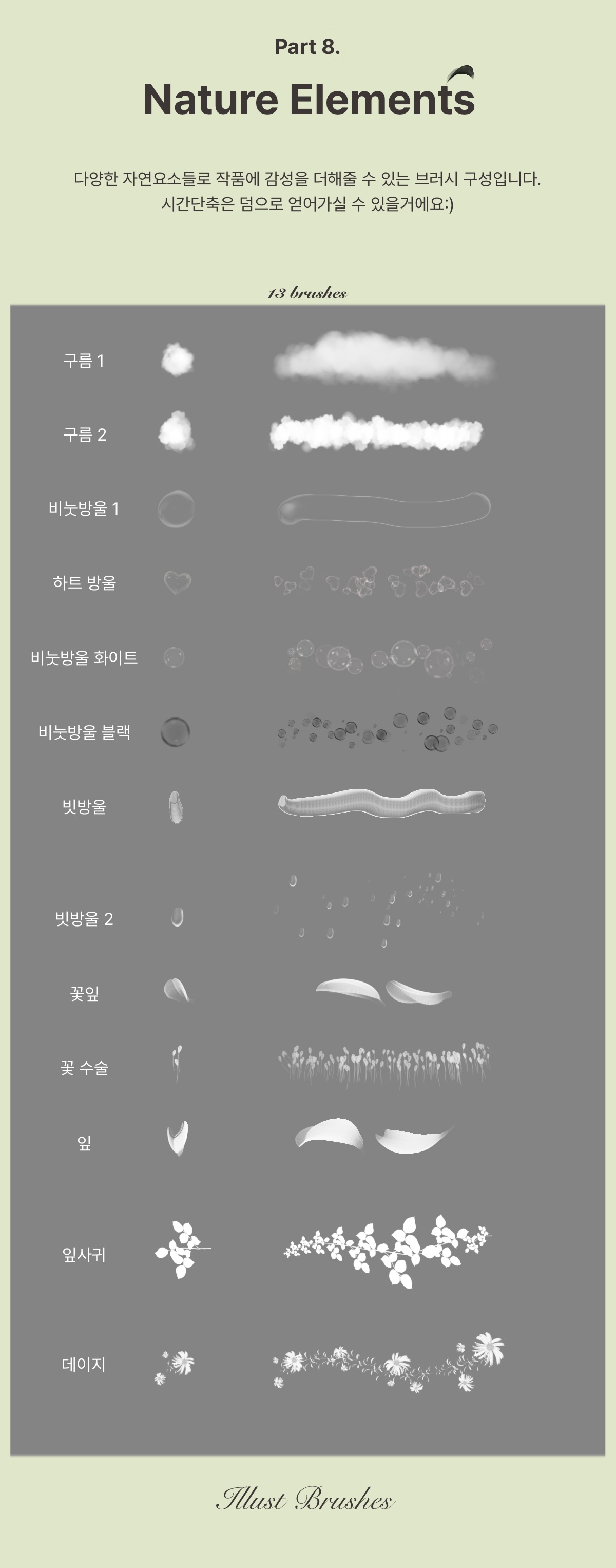 배경이나 풍경표현을 위한 자연요소 브러시들도