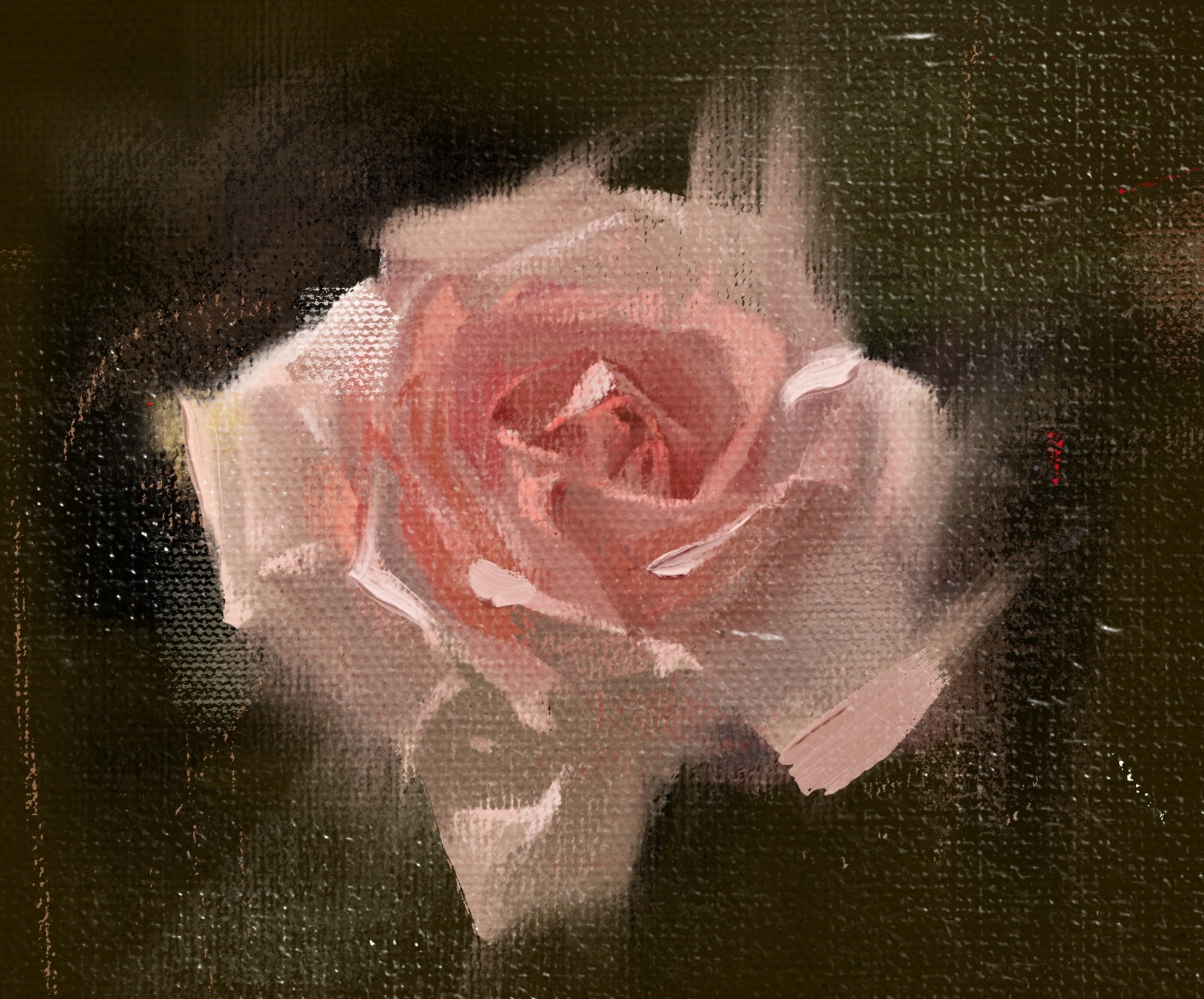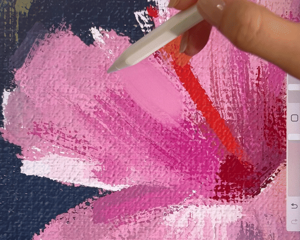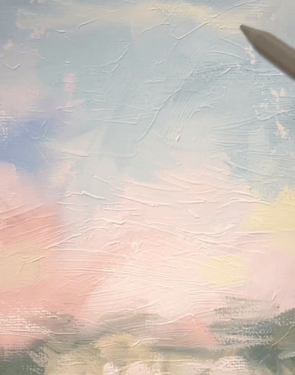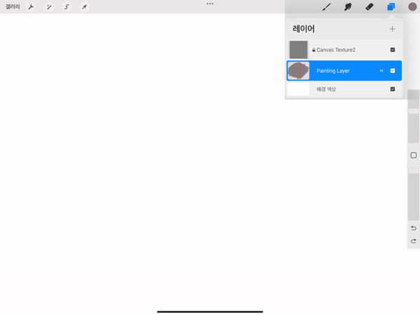 캔버스 요철 사이가 메꿔지듯이 칠해지는