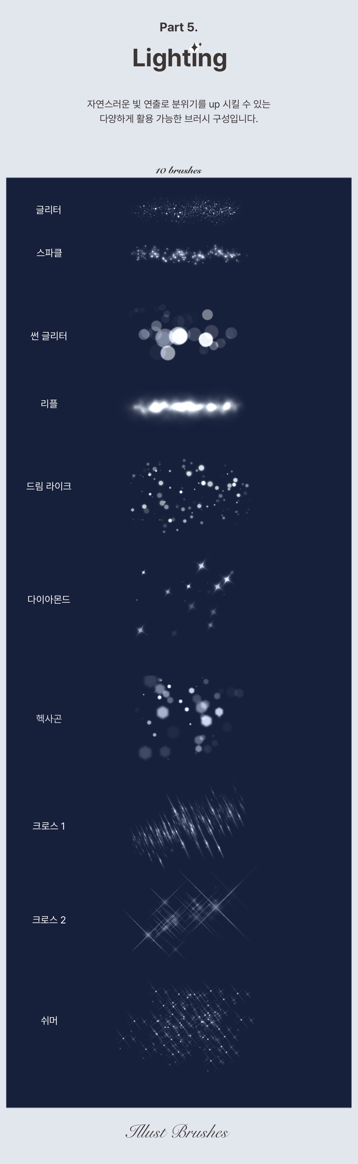 겹쳐 채색할수록 반짝임이 더해지는 브러시 입니다.