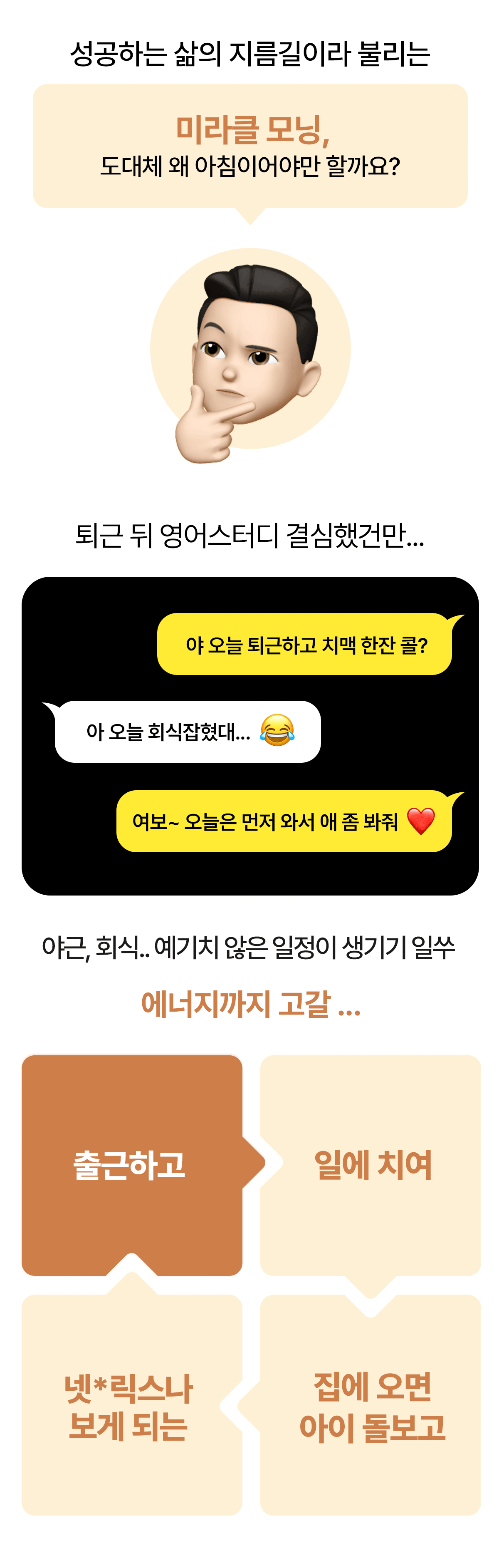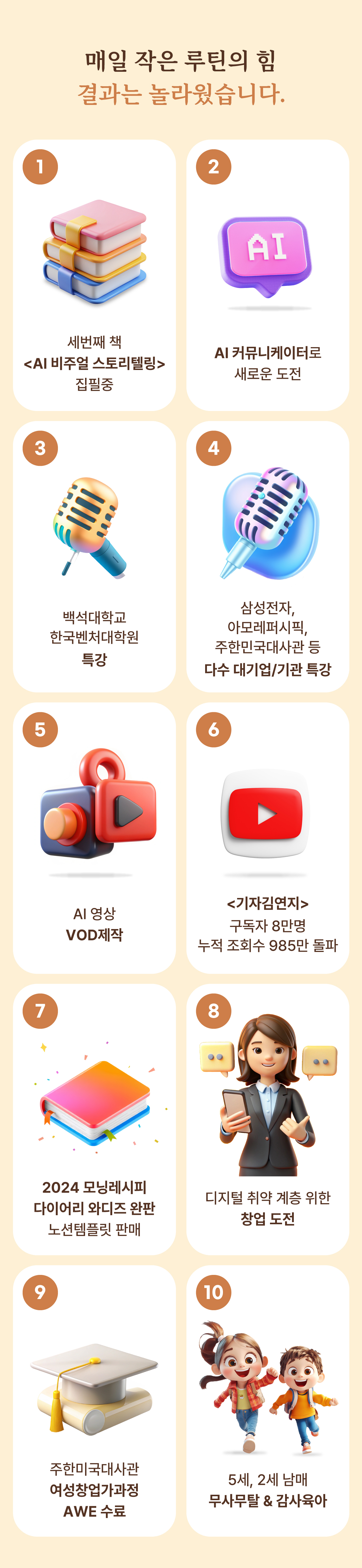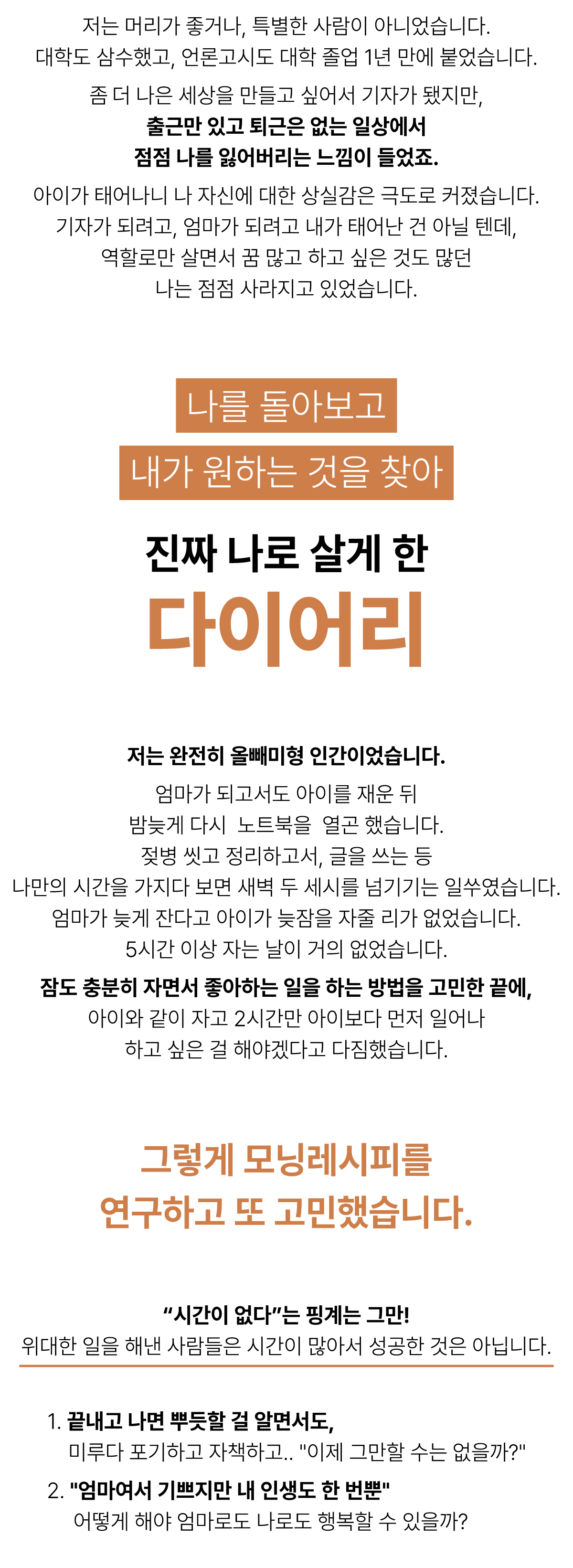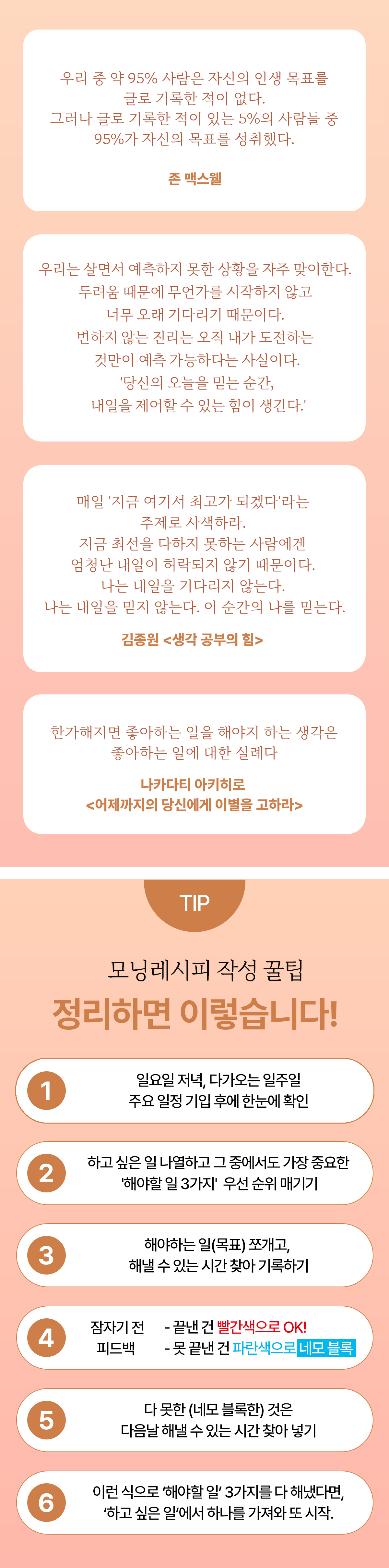 워렌버핏, 팀쿡 CEO 등 리더들의 성공 루틴을 담았어요. 하루 10분이면 충분해요. 내가 진정 내가 되고 기적이 되는 시간. 기적을 미루지 말아요! Be the Miracle