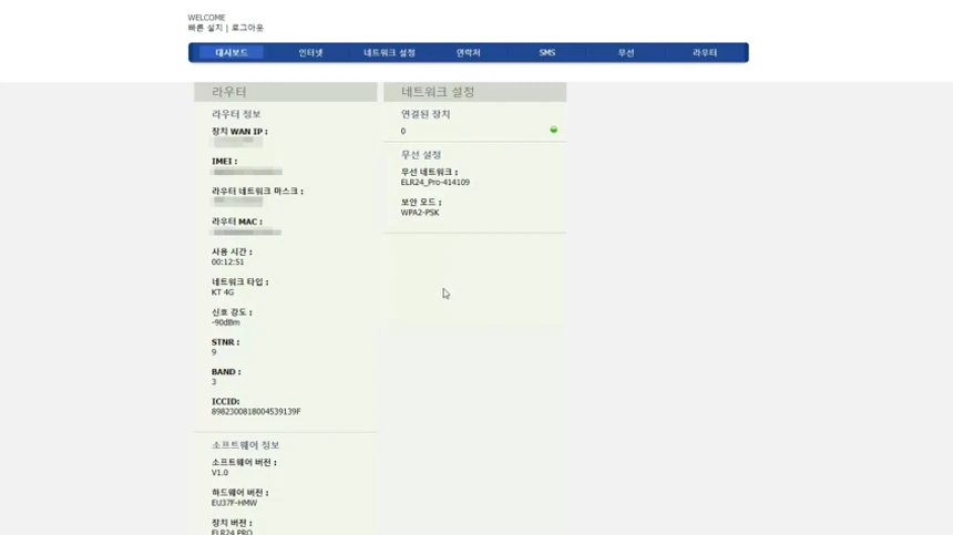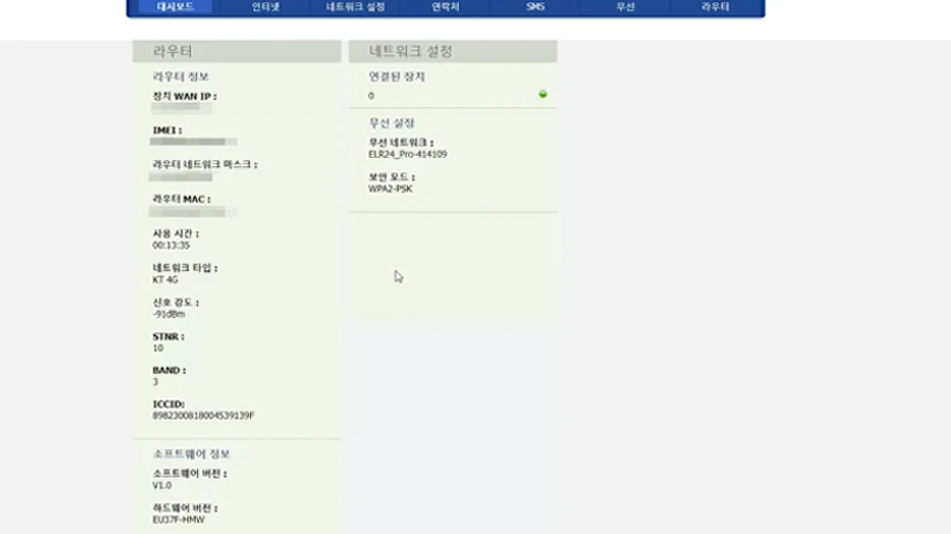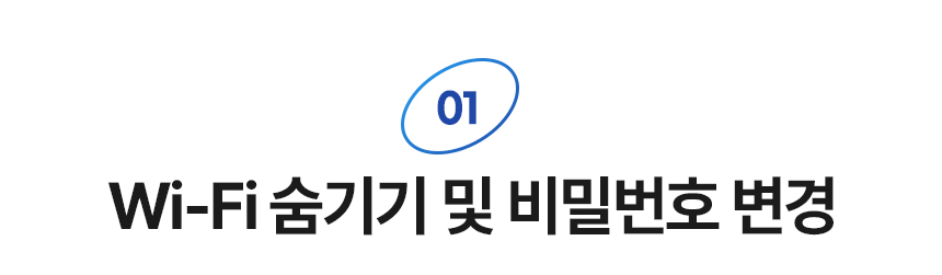 [무선-무선 보안 설정]에서 Wi-Fi 비밀번호를 변경하거나 타인이 접근하지 못하도록 Wi-Fi를 숨길 수 있습니다.