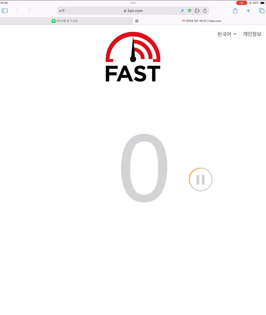 <Fast.com>으로 다운로드 속도 측정 결과 약 98Mbps의 전송 속도를 확인할 수 있습니다.