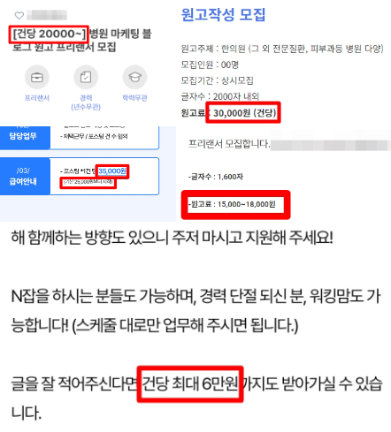 * 24년 9월 2일 기준, 원고 작가 모집중인 공고 일부