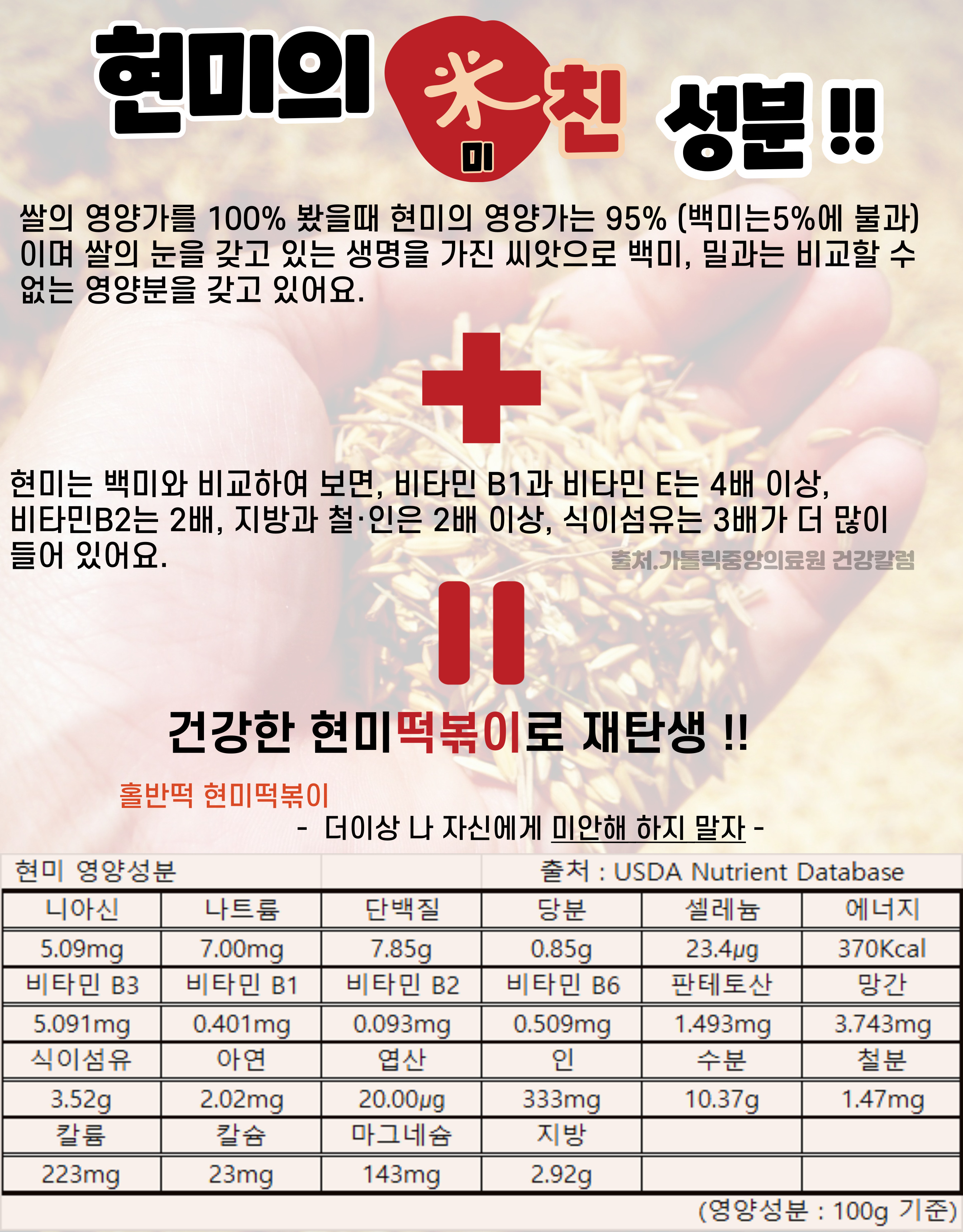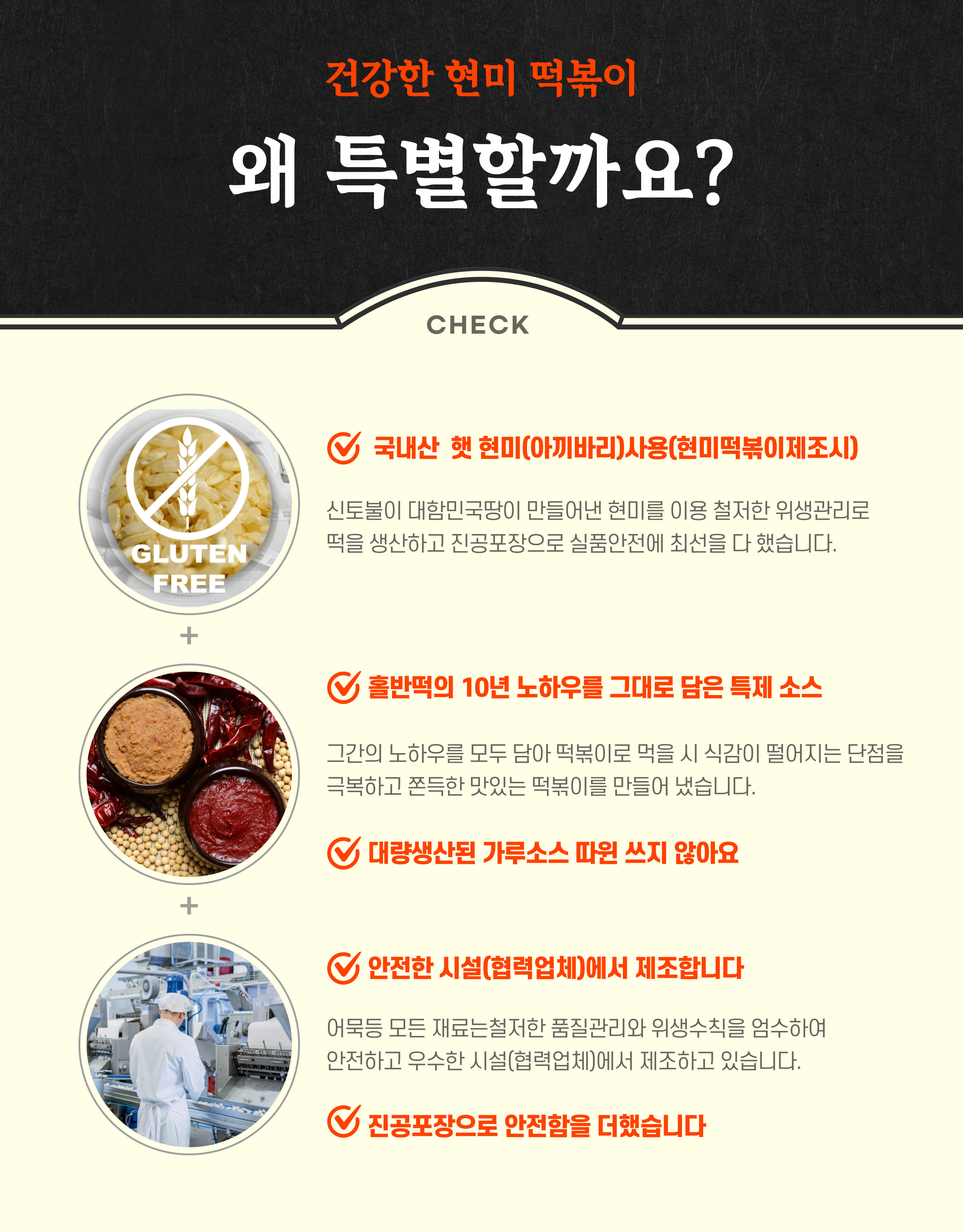 현미의 뛰어난 효능은 모두 알고 있습니다. 국산 현미만을 사용해 쫄깃한 가래떡에 프리미엄어묵을 더해 한차원 높은 떡볶이 밀키트를 만들었습니다. 인생 최고의 떡볶이를 맛보세요.