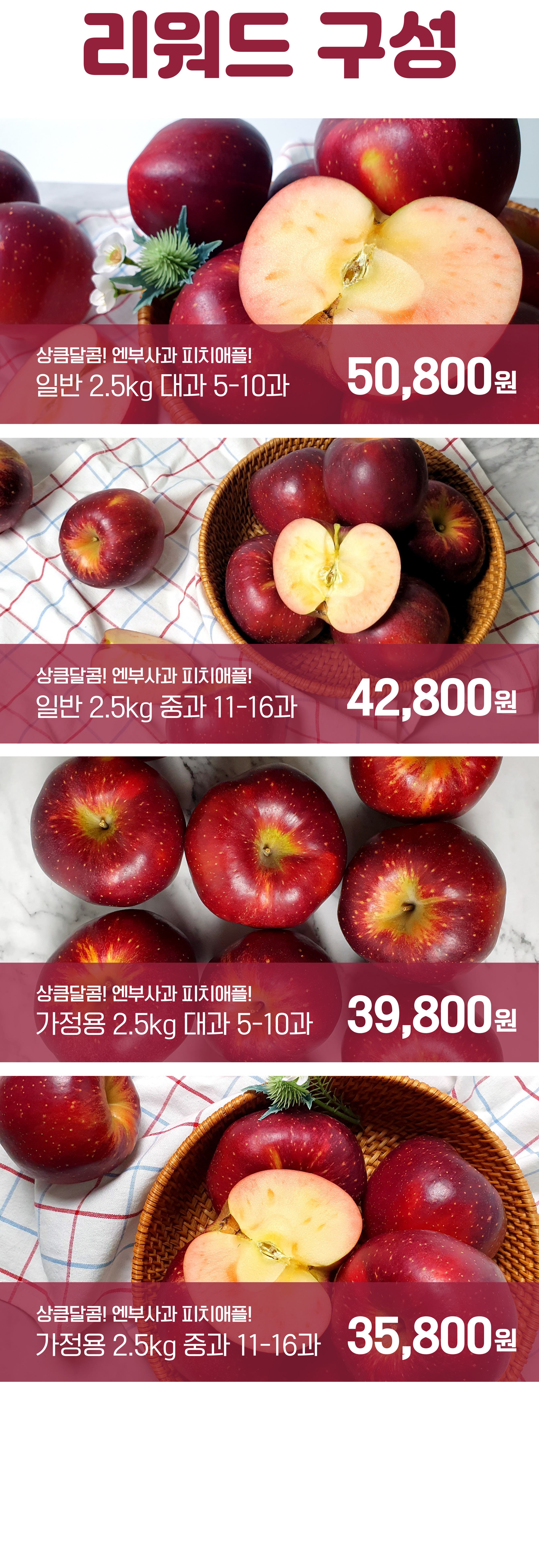 새콤달콤 겉과 속이 다른 사과가 찾아왔어요! 엔부사과 피치애플! 겉은 찐한 검붉은색을 띄지만 속은 복숭아의 결처럼 붉은빛깔이 살짝 들어간 맛있는 가을사과!