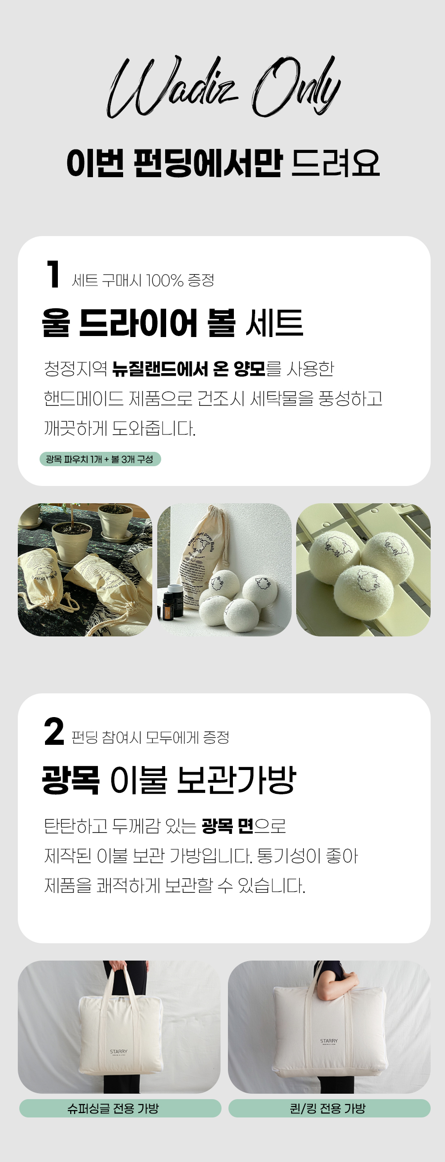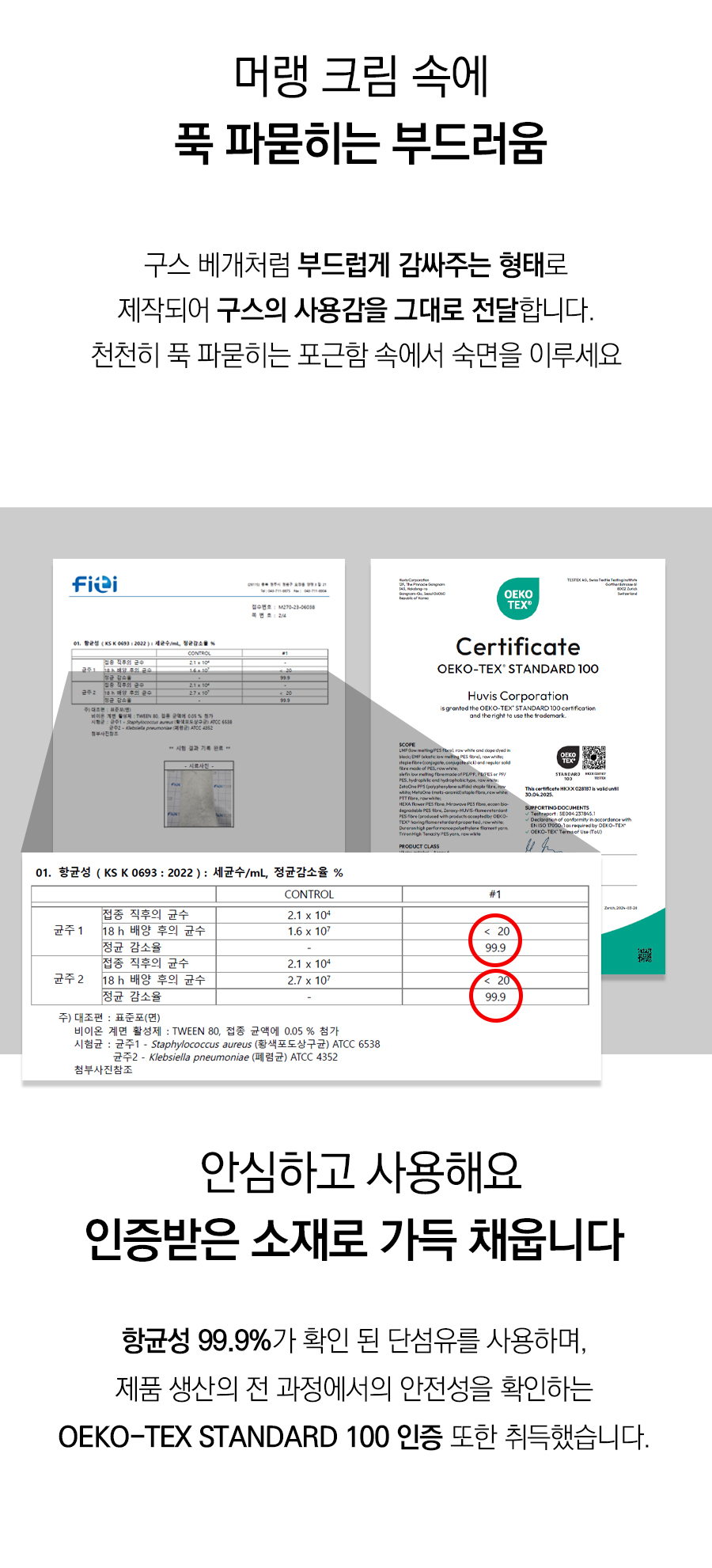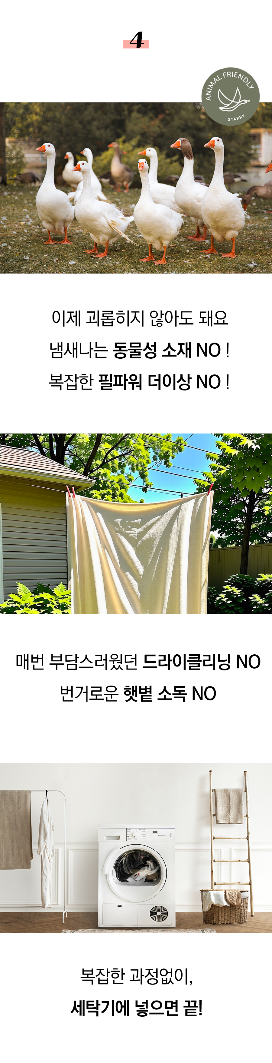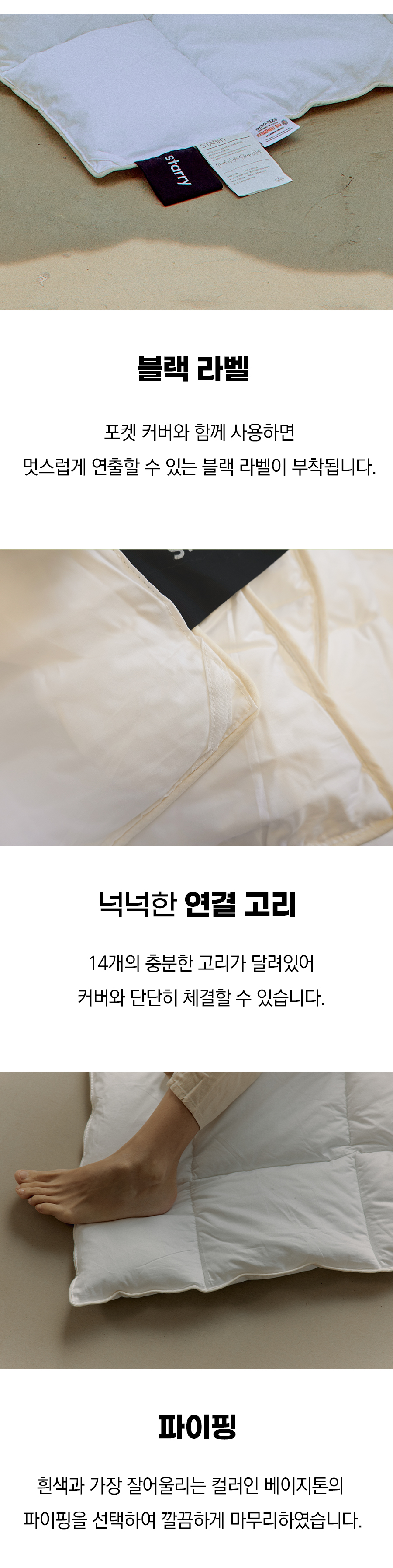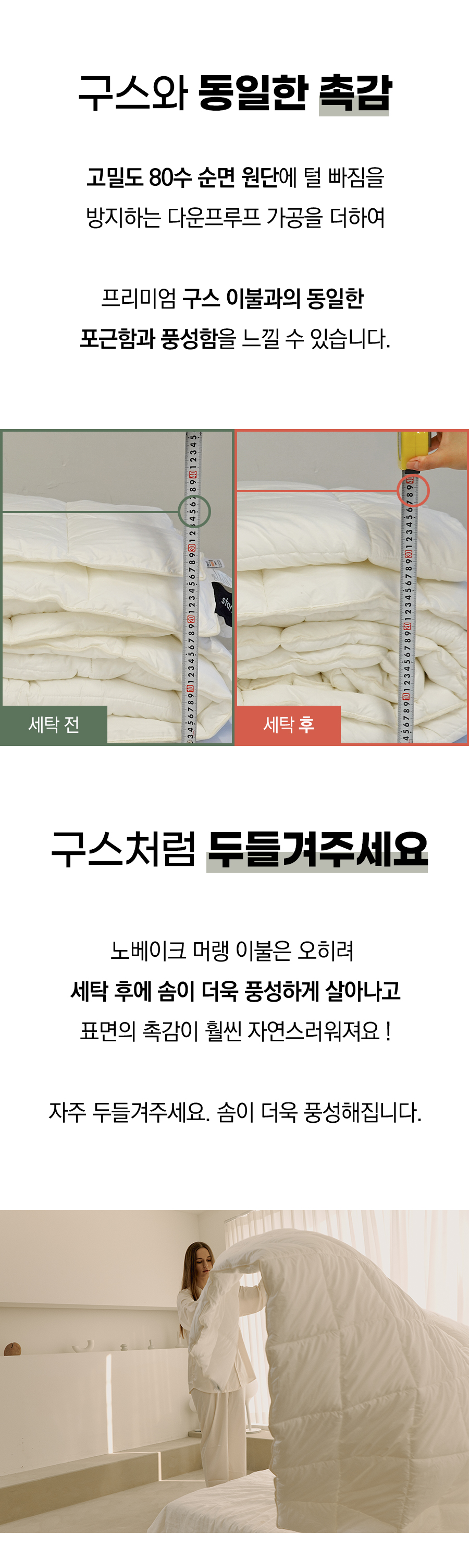 - 건조기 사용 시 저온을 권장하며, 건조 후 여러번 충분히 두들겨주시면 솜이 살아납니다.