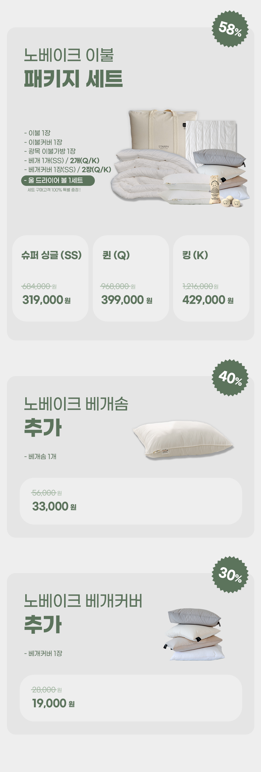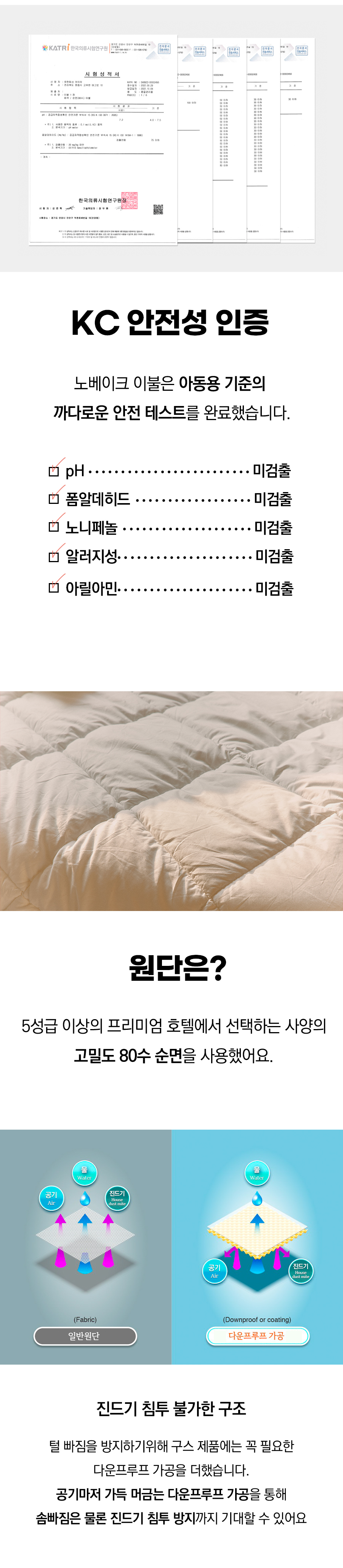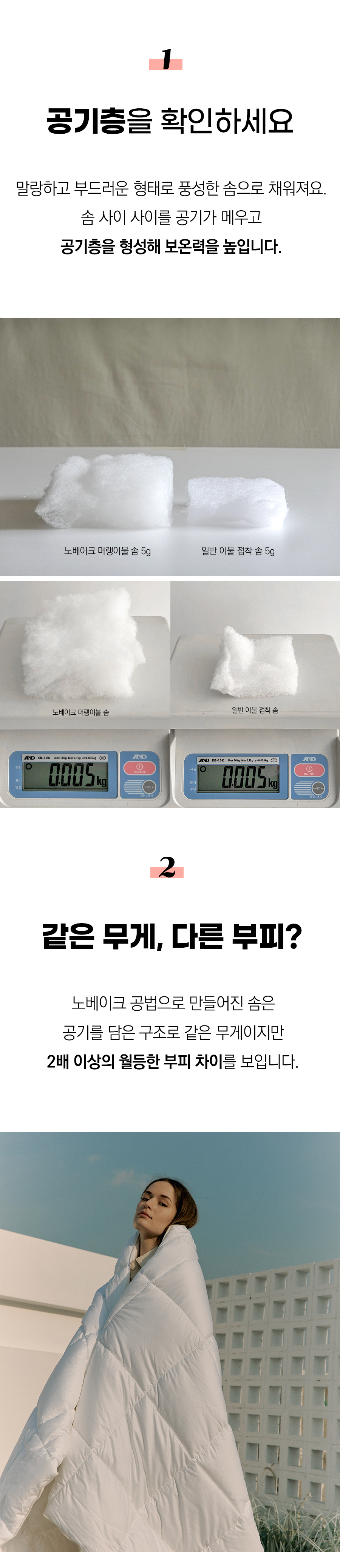 - 노베이크 머랭이불은 철저한 관리 속에서 만들어지고, 포장 전 에어샤워를 통해 먼지를 제거하고 포장됩니다.다만, 가벼운 세탁이나 이불털기 코스를 거친 후 사용하시면 더욱 위생적이고 포근하게 사용하실 수 있어 추천드립니다.