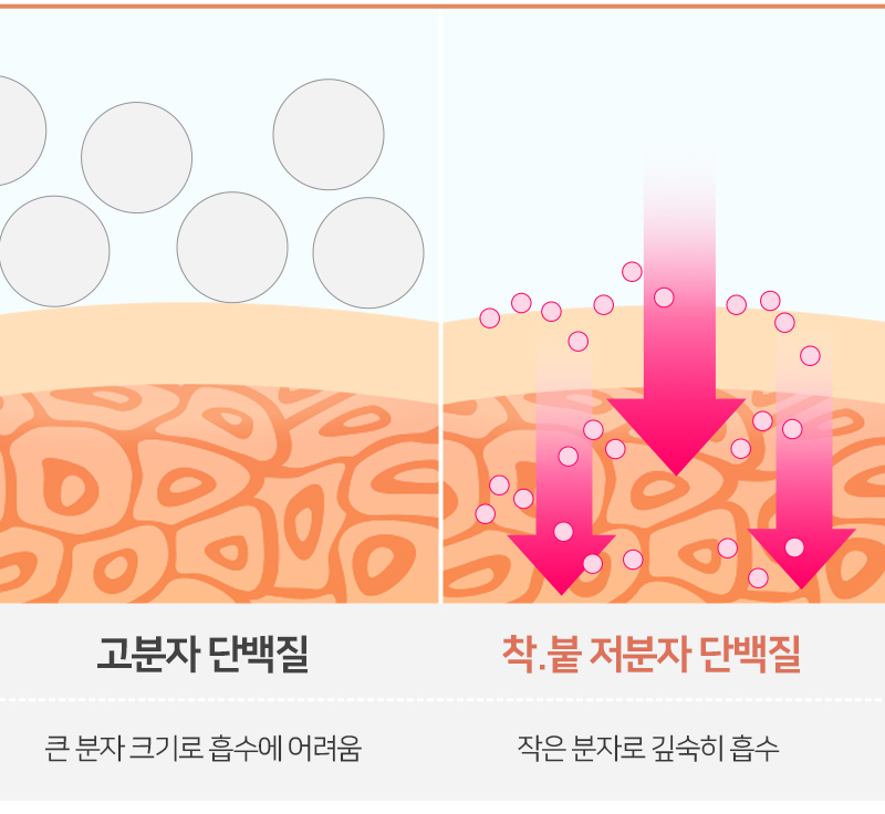 가수분해 기술로 만든 저분자 단백질은 일반 단백질보다 크기가 작아 흡수성이 더 뛰어나다고 해요.
