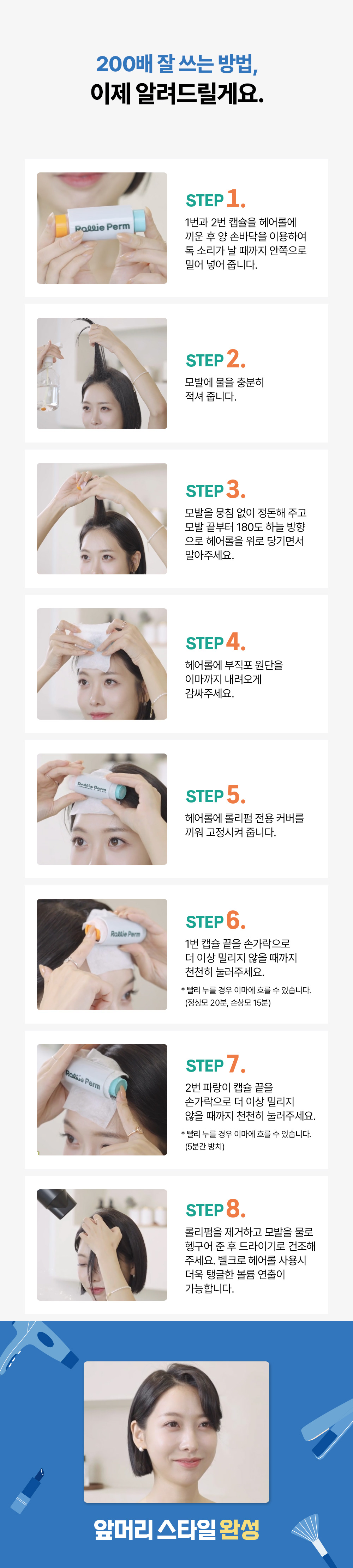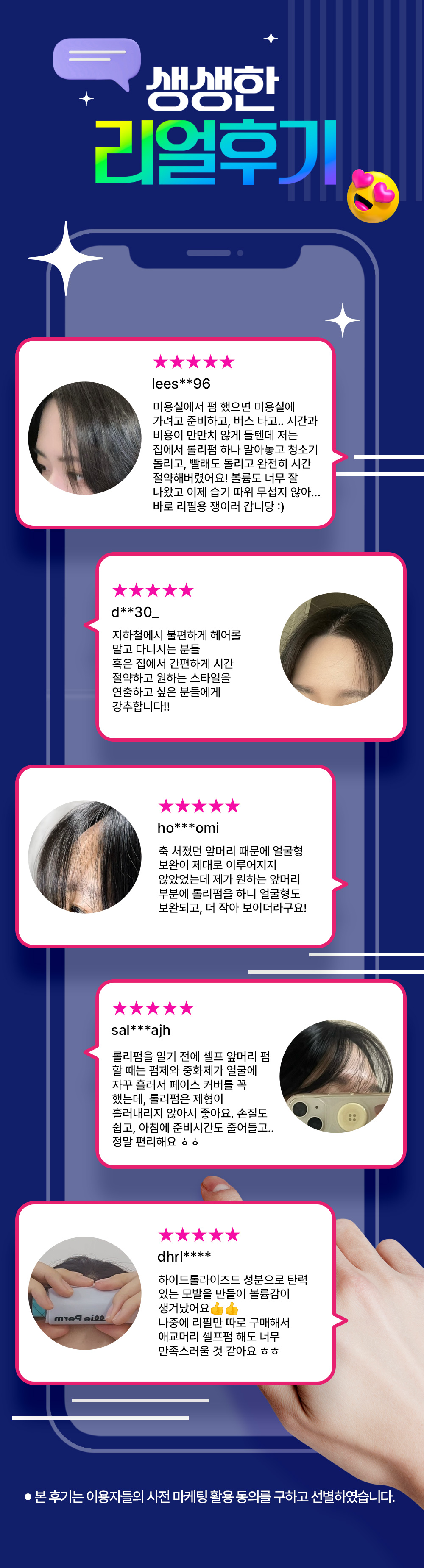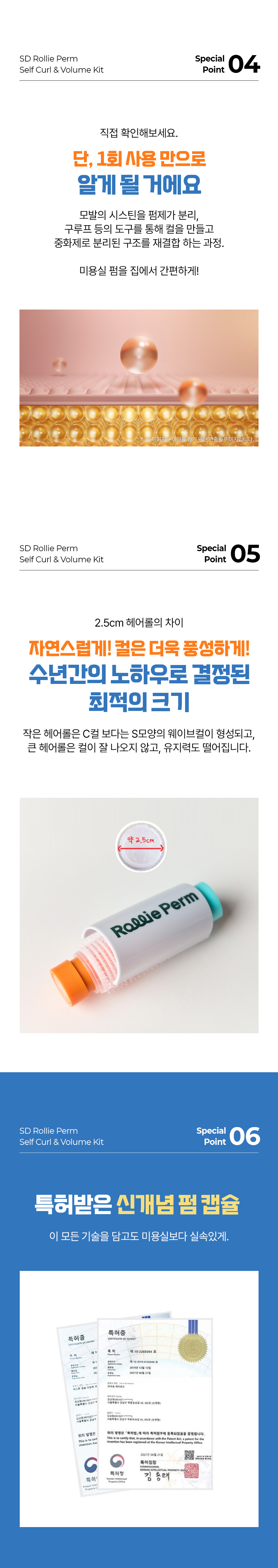 저희 회사는 헤어 케어 솔루션을 제공하는 선도적인 기업으로, 오랜 시간에 걸친 연구 개발 끝에 특허받은 앞머리 볼륨 셀프 컬 펌제를 출시하게 되었습니다. 고객의 아름다움과 스타일링 편의성을 위해 혁신적이고 안전한 제품을 제공하는 것을 목표로 하고 있습니다. 롤리펌 캡슐 톡! 셀프 컬 앤 볼륨 키트는 수년간의 연구와 실험 끝에 탄생한 제품입니다. 기존의 헤어 스타일링 제품들이 갖고 있던 한계를 극복하기 위해, 전문가들과 함께 신중한 테스트와 품질 관리 과정을 거쳤습니다. 특히, 앞머리 볼륨을 손쉽게 연출할 수 있도록 특화된 제품으로, 고객이 원하는 자연스럽고 볼륨감 있는 스타일을 간편하게 완성할 수 있도록 돕습니다. 앞머리 볼륨 셀프 컬 펌제는 (특허 번호: 제 10-2366517호)로 등록된 독자적인 기술을 바탕으로 개발되었으며, 이 기술은 모발 손상을 최소화하면서도 스타일링 효과를 극대화하는 혁신적인 성분 조합을 사용합니다. 이로 인해, 사용자가 미용실에 가지 않고도 집에서 손쉽게 전문적인 스타일을 구현할 수 있습니다.