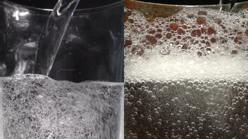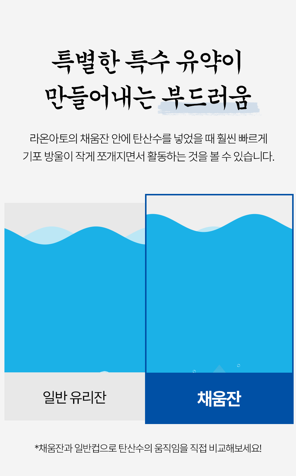 *탄산수로 채움잔과 일반컵을 비교한 영상입니다.