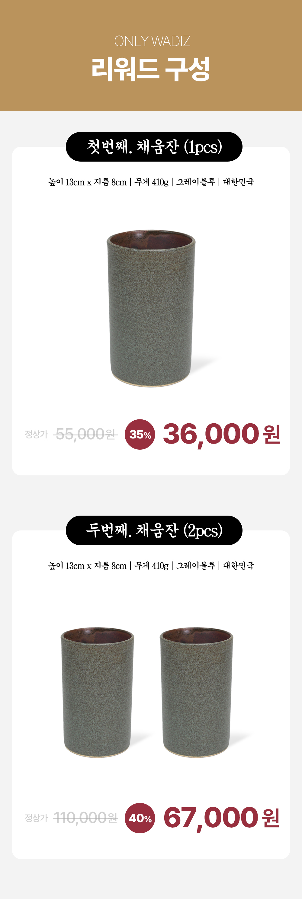 그 이상의 특별함을 담을 수 있는 잔. 건강과 맛, 그리고 디자인까지 고려한 채움잔이 당신의 일상을 더 풍요롭게 만들어 드립니다.