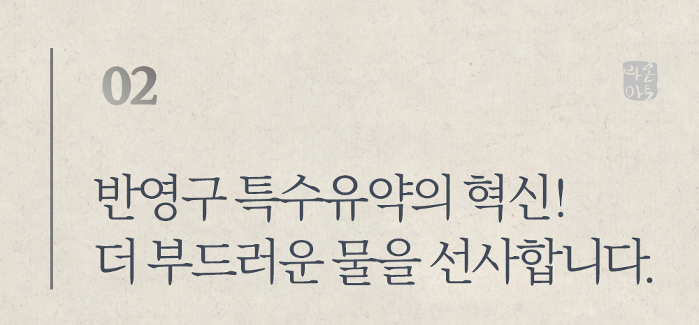 마시는 순간부터 입안 가득 퍼지는 신선한 물의 느낌을 제공합니다.