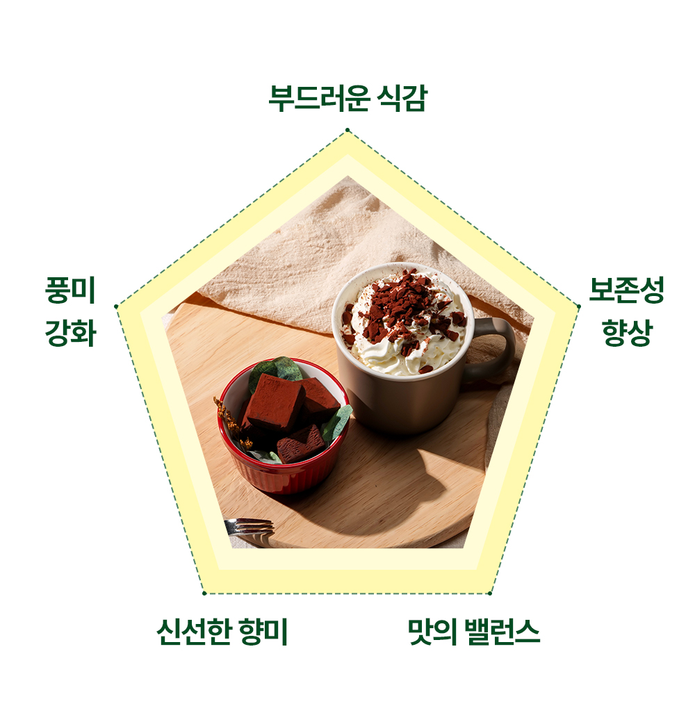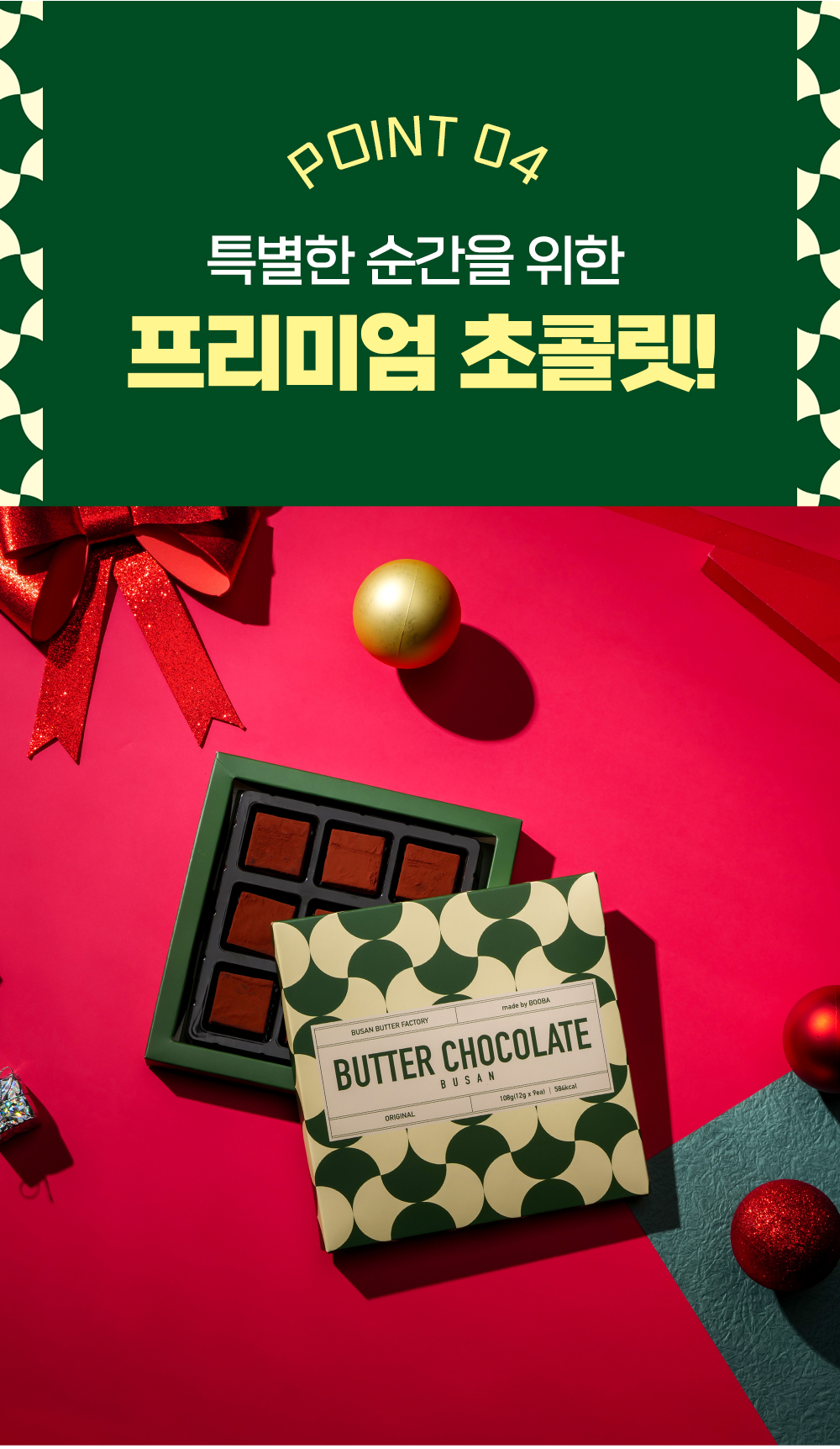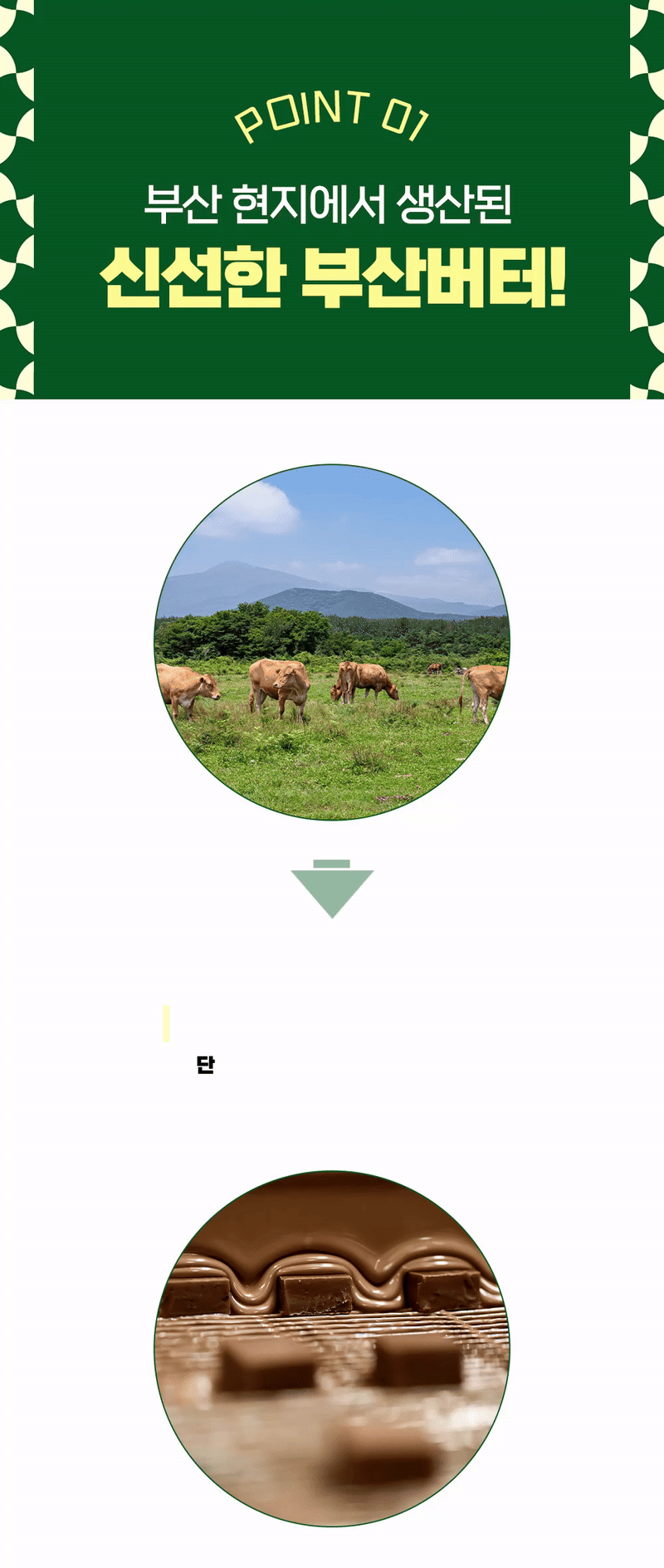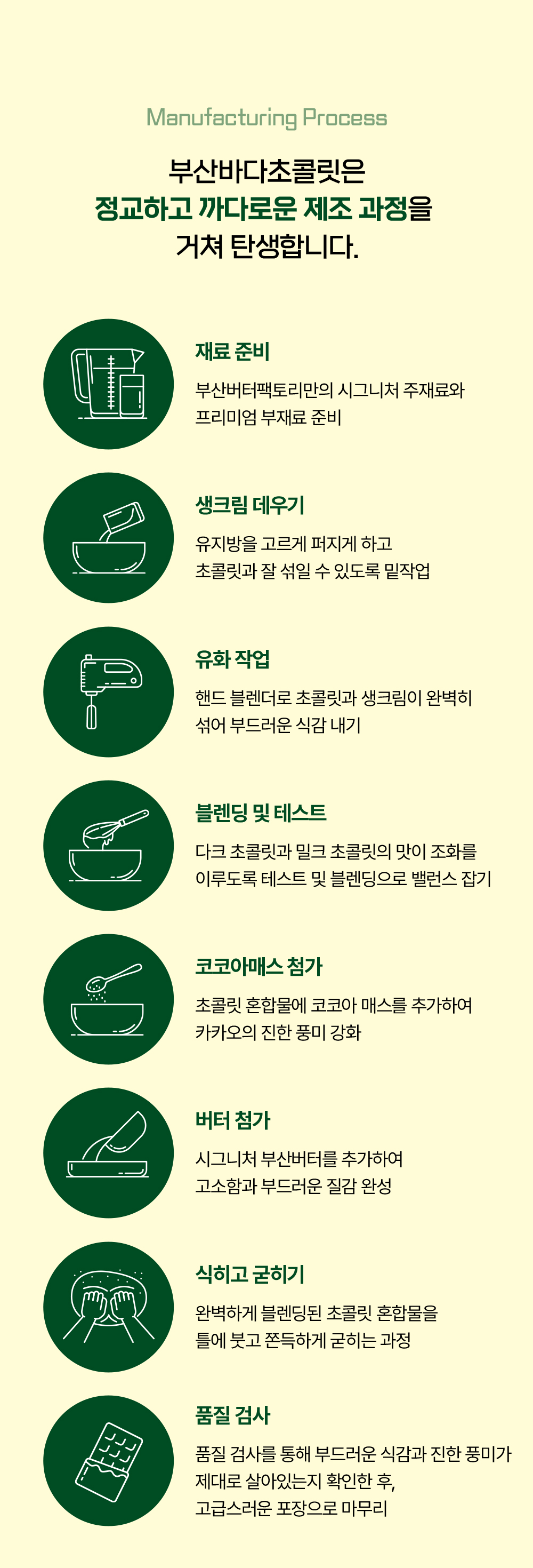 A. 부산우유로 만든 신선한 버터는 초콜릿의 고소한 풍미를 한층 더 돋보이게 하며, 더욱 부드러운 식감을 제공합니다.