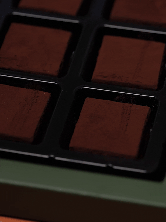 초콜릿의 텍스처는 핸드 블랜더로 정성껏 작업하여 더욱 부드럽고 크리미한 식감을 선사합니다. 한 입 베어 물면 입안에서 천천히 녹아내리며 매끄럽게 퍼지는 초콜릿의 질감은 그야말로 특별한 경험을 제공합니다.