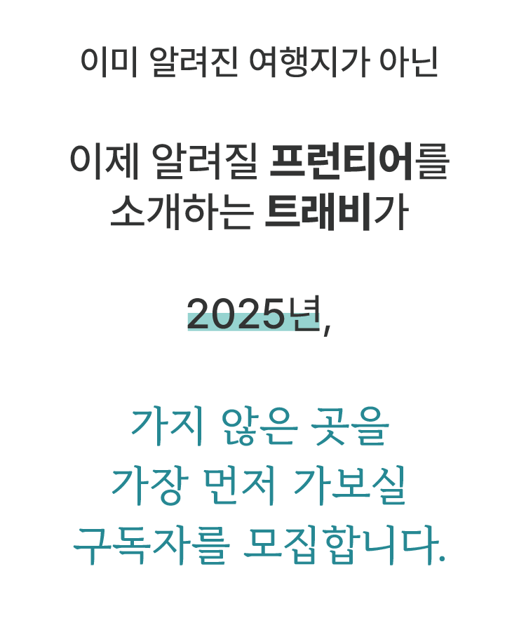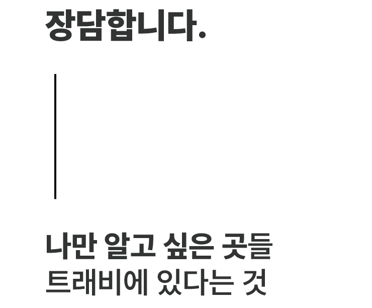 앞으로도 트래비가 계속 나아갈 수 있도록 함께해 주시면 많은 힘이 될 것 입니다. 저희 또한 어디서도 볼 수 없는 재밌는 여행기와 정보로 확실하게 보답할테니, 손 꼭 잡고 같이 걸어가 주시면 감사하겠습니다.