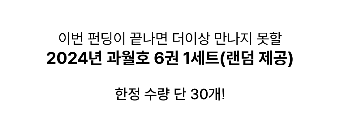 25년 1월부터 구독권 가격이 114,000원[권당 9,500원(기존: 8,500원)]으로 인상됩니다. 인상되기 전 마지막 혜택을 누릴 수 있는 기회는 이번 와디즈 펀딩 뿐!