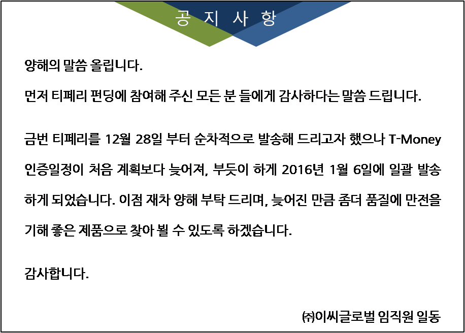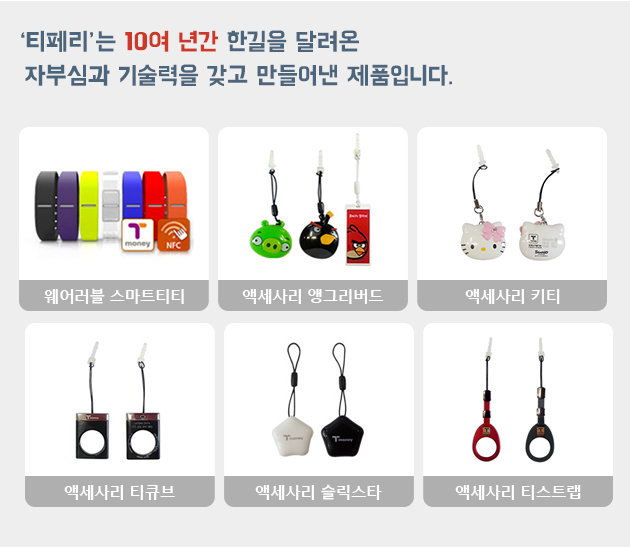 저희는 2004년 부터 지금까지 10여년이 넘게 T-Money 액세사리 분야 공식 제조/공급 인증사로 한길을 달려온 중소기업체인 '(주)이씨글로벌' 입니다.