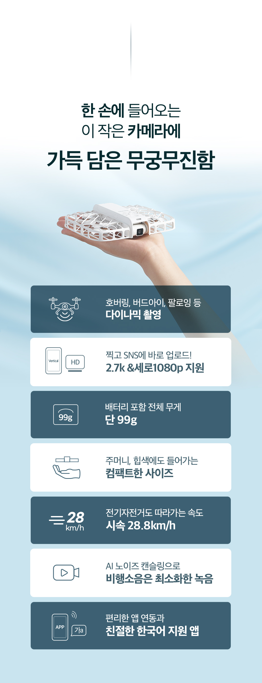 [3억 달성] 99g으로 가볍게, AI 플라잉카메라니까 더 간편하게