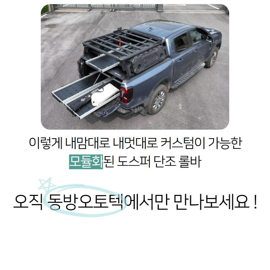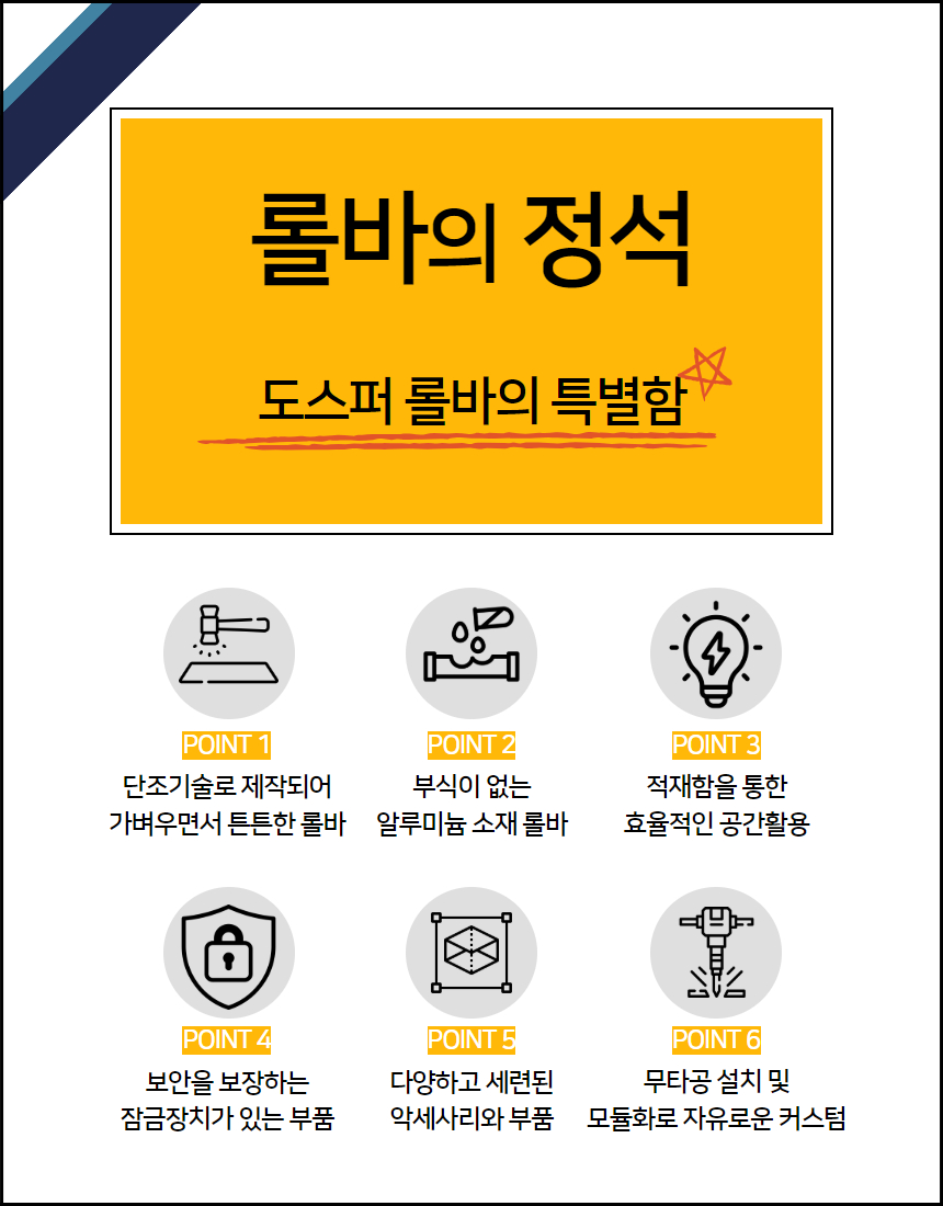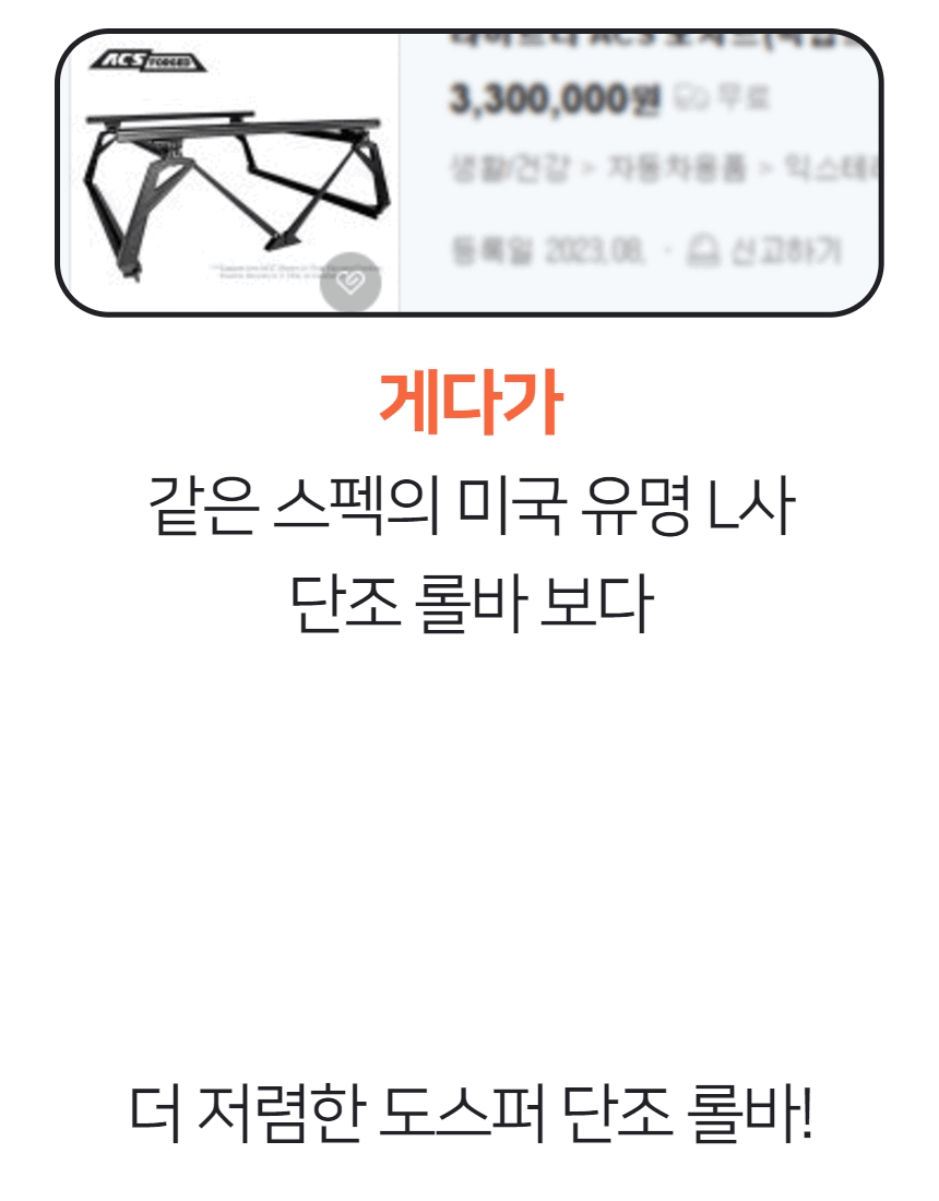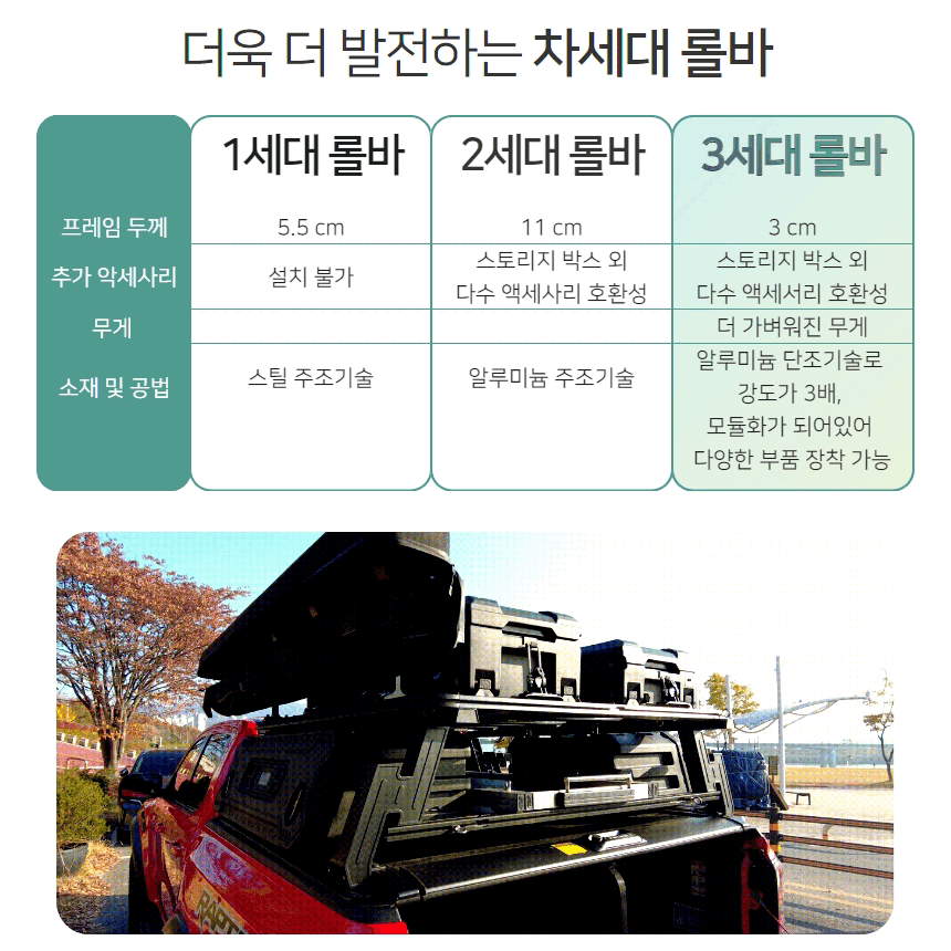 단조공법으로 만들어져 밀도가 높고 단단하지만 가벼운 알루미늄 롤바입니다. 롤바의 4면에 T슬롯이 장착되어있어 어떤 부품이든 볼트와 너트로 장착이 가능합니다. 부식과 변형이 없습니다