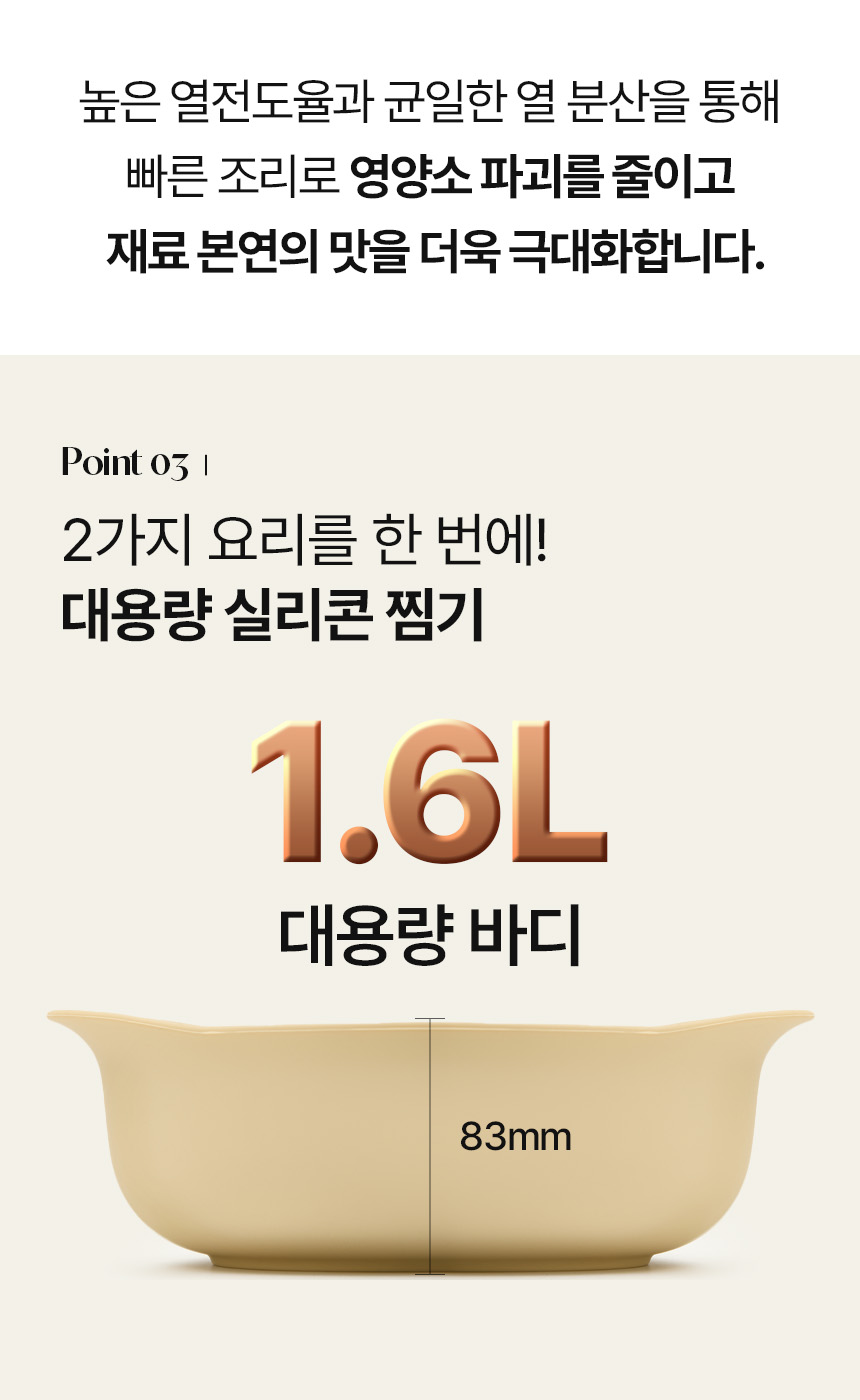 시중에는 다양한 실리콘 찜기가 있지만, 대부분이 1단 구조로 제한적이죠. 저희는 4 in 1 이란 다용도 기능과