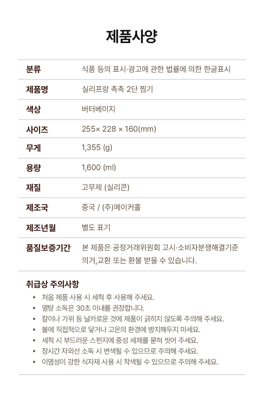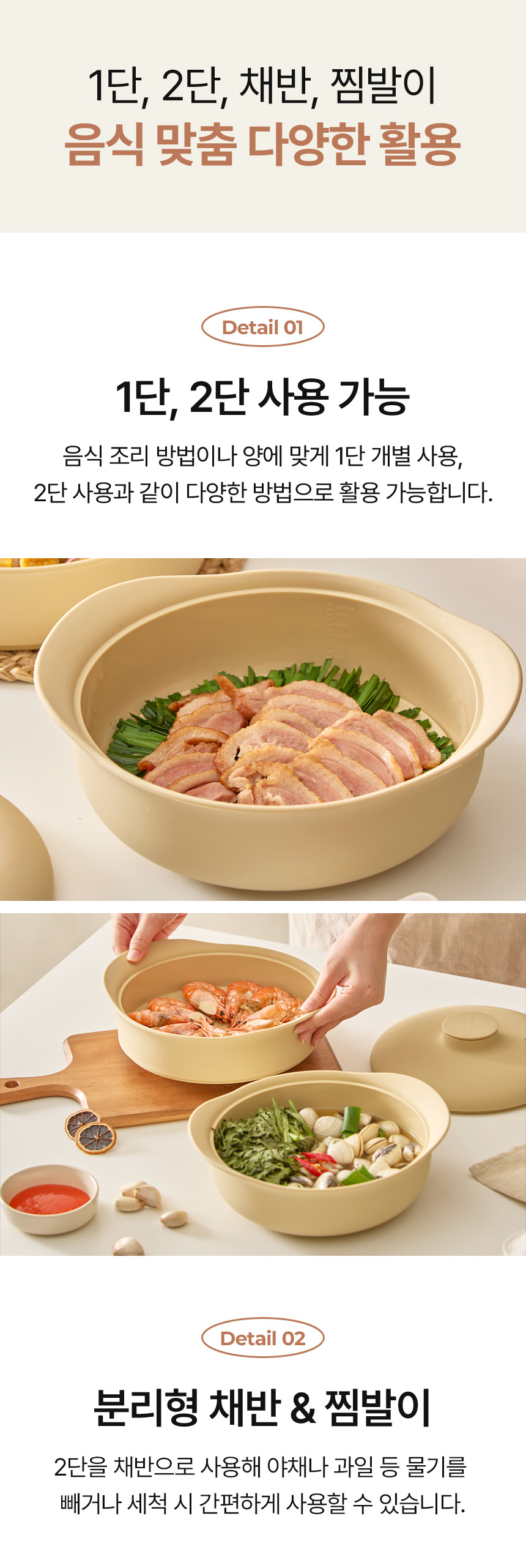 이제 복잡한 조리 과정 없이 건강한 찜 요리를 즐겨보세요! 전자레인지 하나만 있으면 다양한 요리를 간편하게 조리할 수 있는 통 실리콘 2단 찜기입니다.