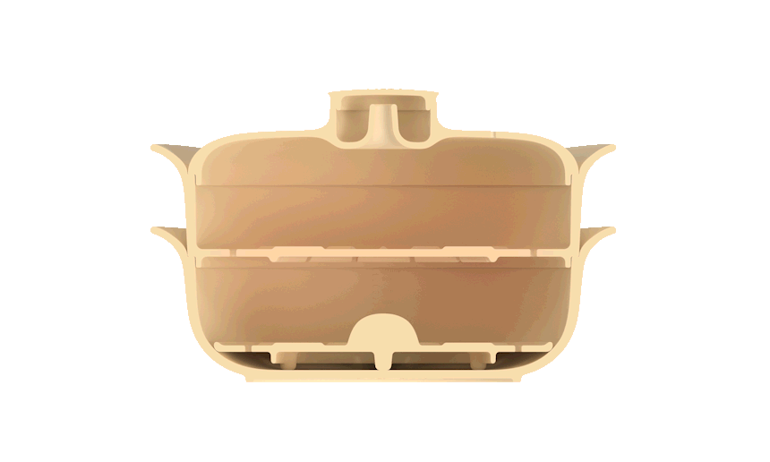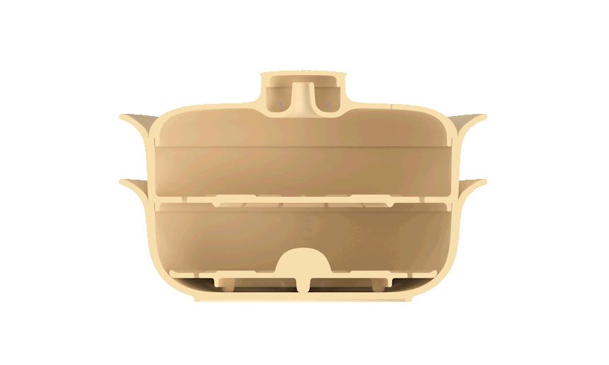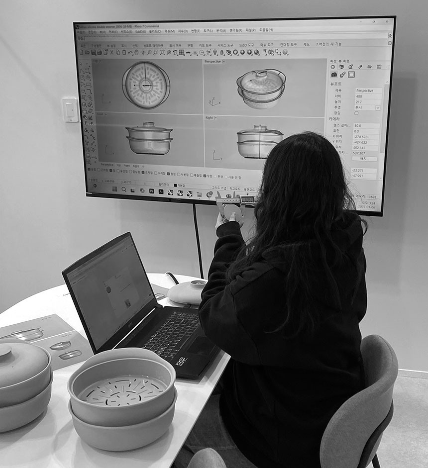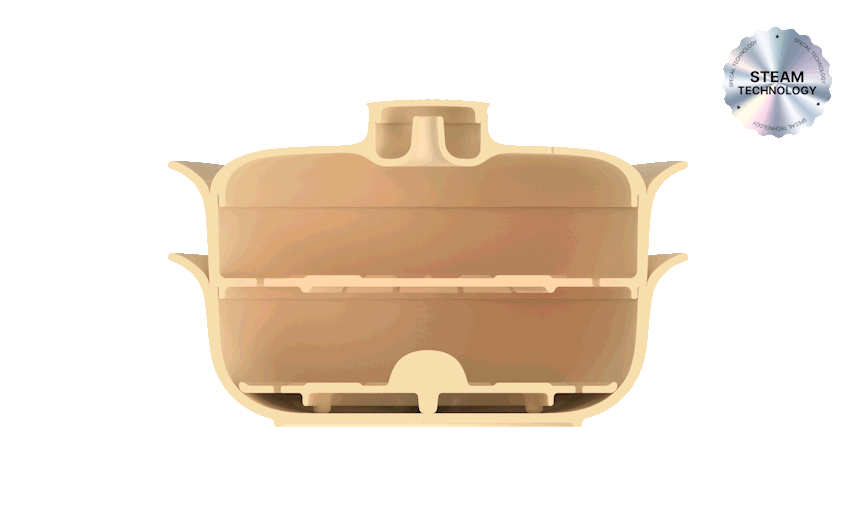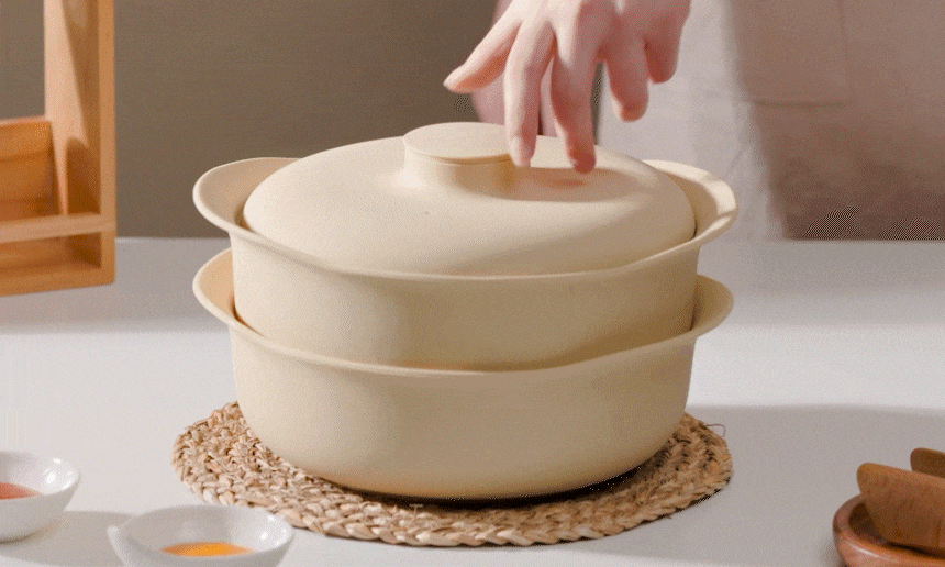 넉넉한 용량의 2단 구성으로 한 번에 다양한 음식을 조리할 수 있는 대용량 실리콘 찜기를 개발하며,