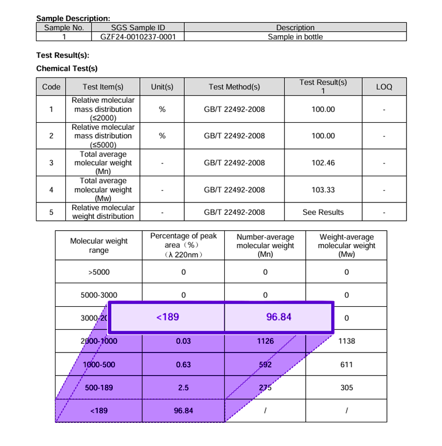 금화규에서 추출한 비건 콜라겐은 200달톤 미만의 189달톤 사이즈로 머리카락보다 무려 20만배나 작은 초미립 저분자 콜라겐입니다.