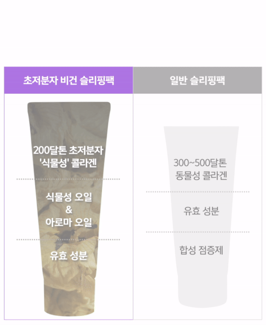 유효성분 파괴는 최소화하고, 비건콜라겐의 유효성분만 뽑아서 추출했습니다.