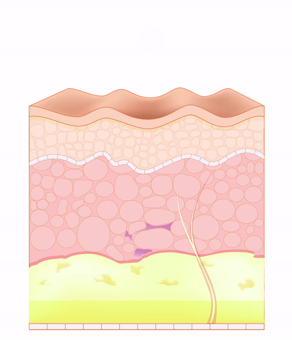 피부에서 진피층 주요 구성 성분은 콜라겐인데, 진피층 두께는 표피의 15~40배로 등과 같이 가장 두꺼운 부위는 5mm 입니다.