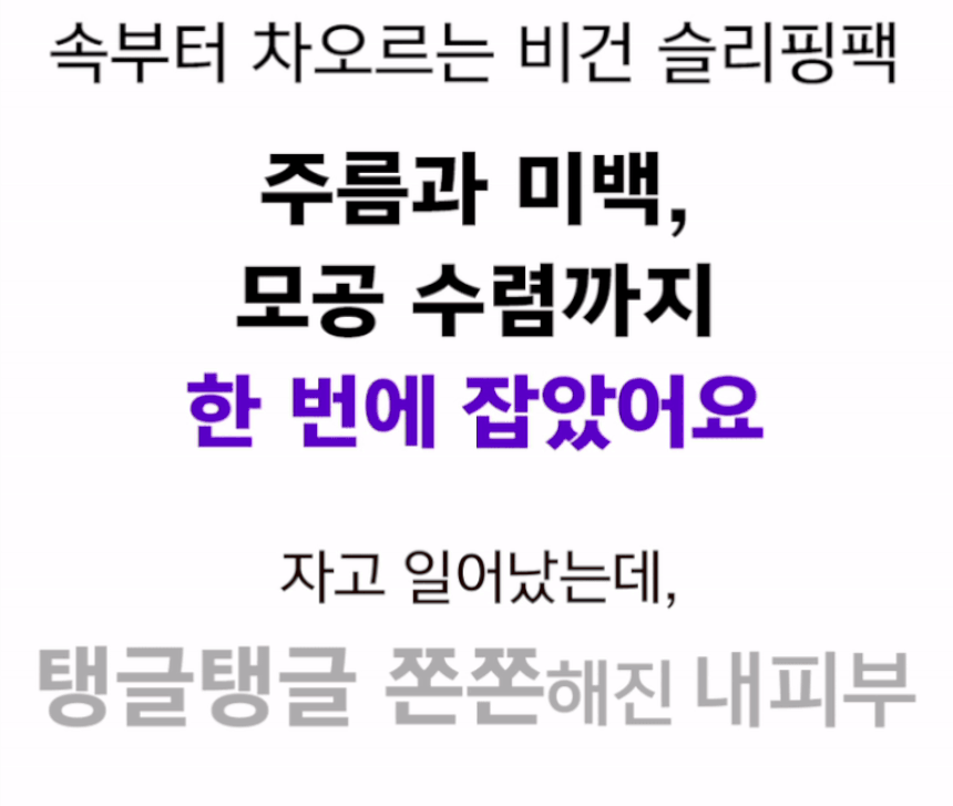 슬리핑팩 사용시 약간의 따가움, 가려운 느낌은 일시적인 명현 현상*에 해당되실 수 있습니다.