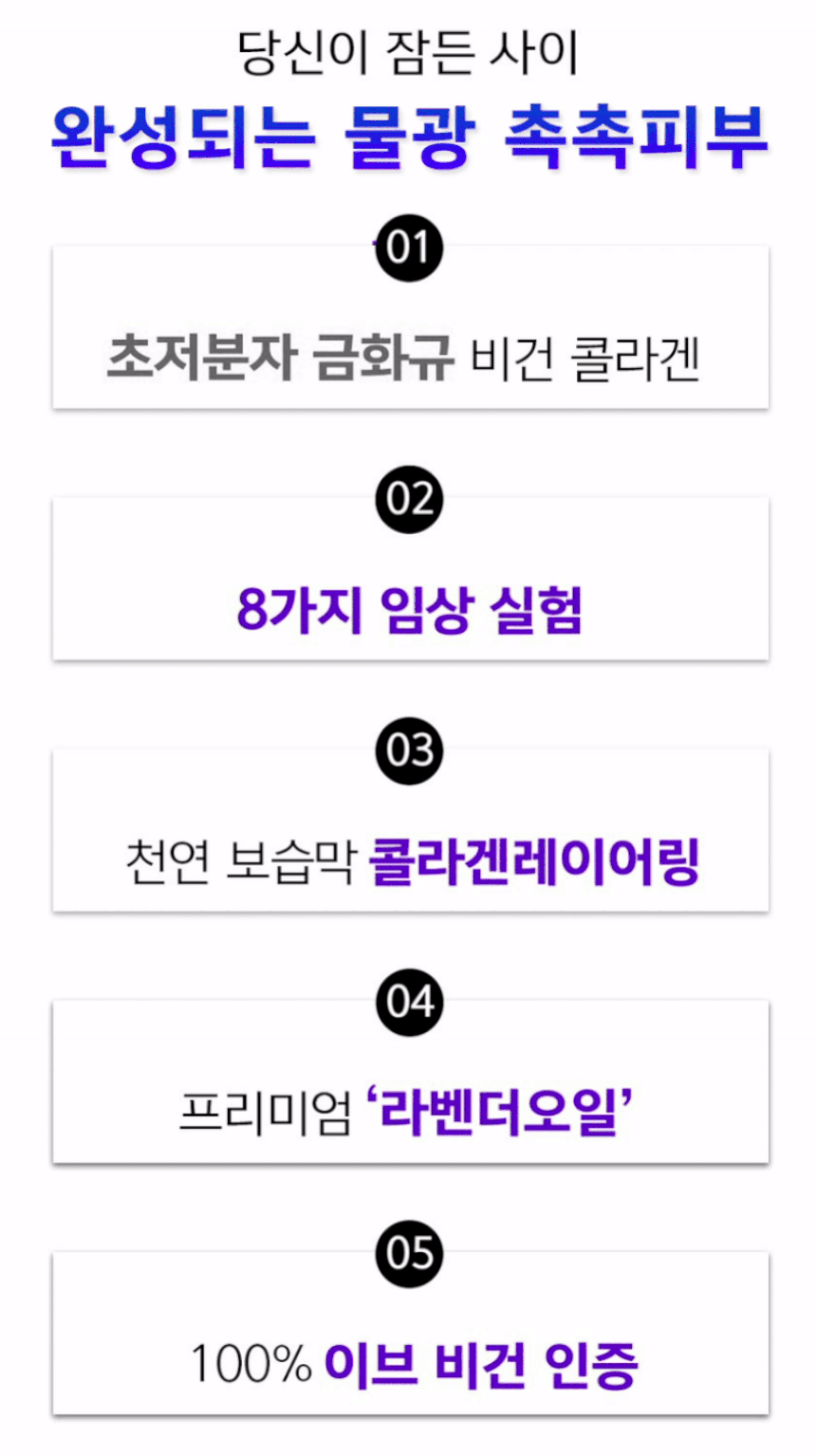 즉, 피부 주요 물질인 콜라겐에 도움을 주기 때문에 속부터 탄력도가 채워지고 증가하게 됩니다.