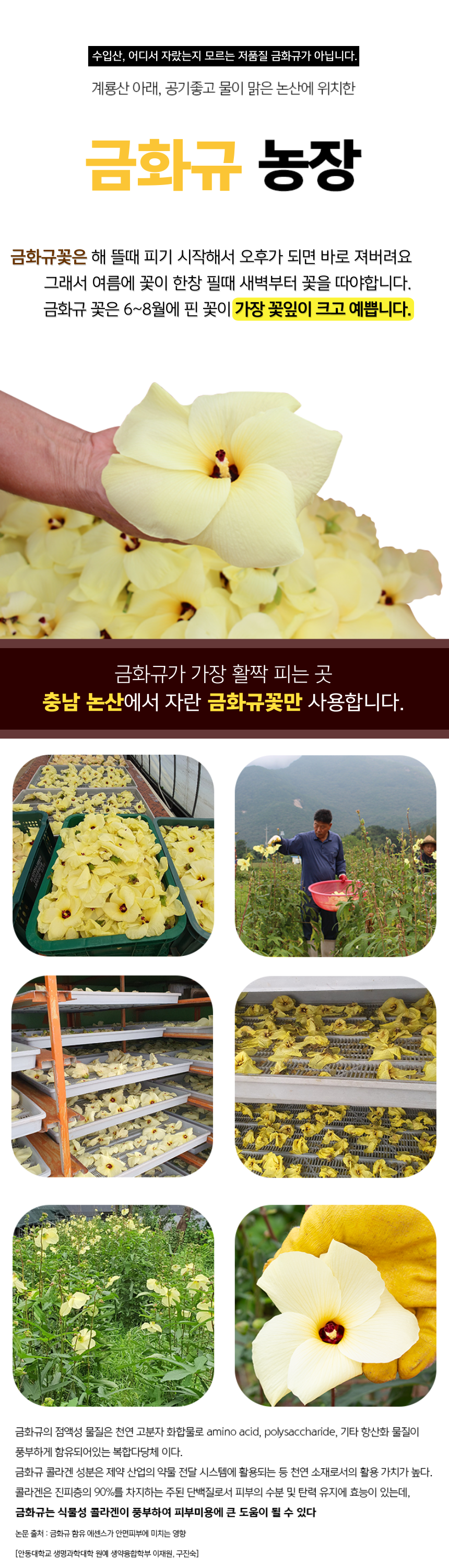 금화규 꽃의 초저분자 비건콜라겐을 추출해 내는 방식이 제일 중요합니다.