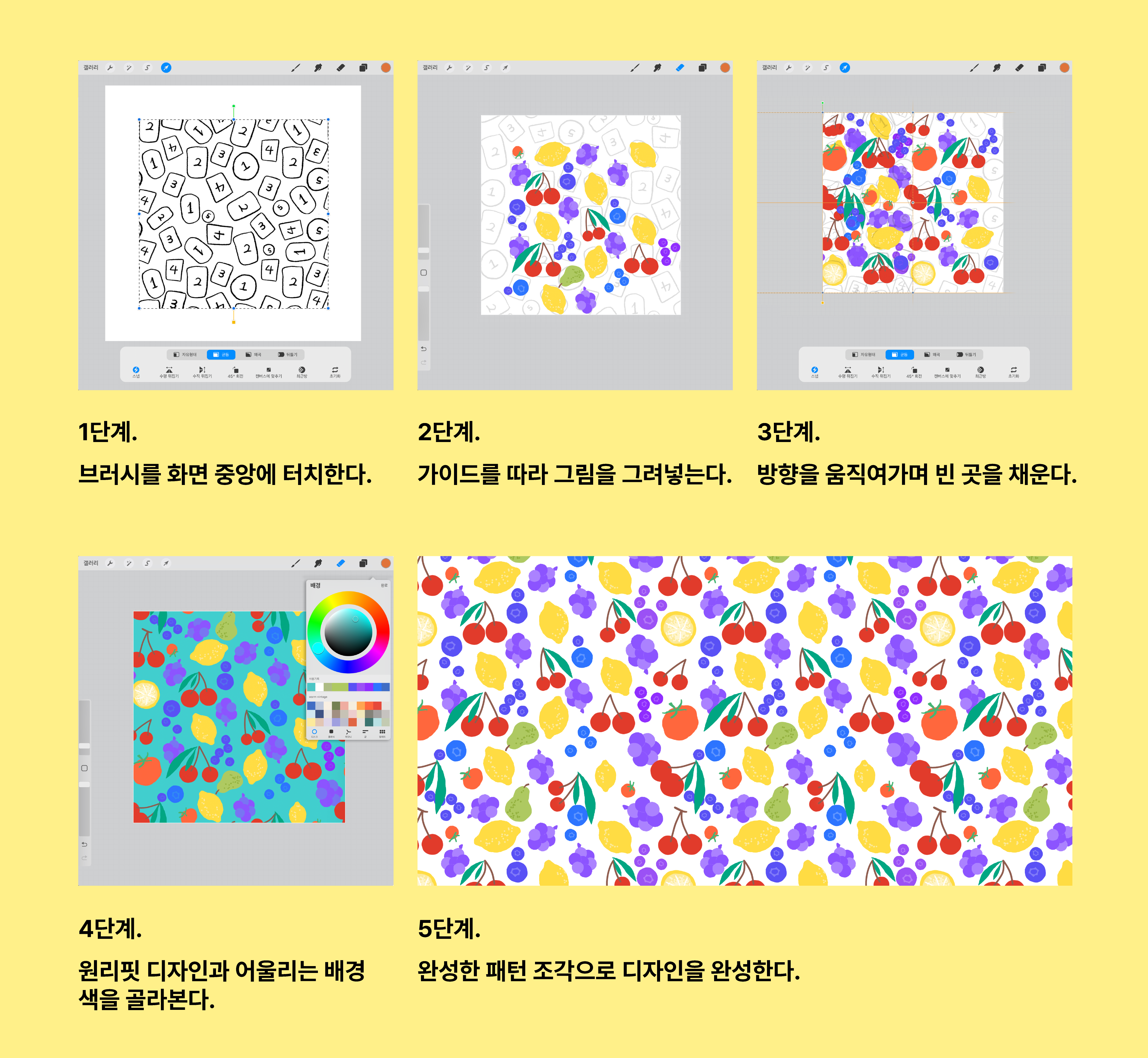 호호의 패턴 브러쉬 가이드를 따라 첫 패턴을 완성한 후,