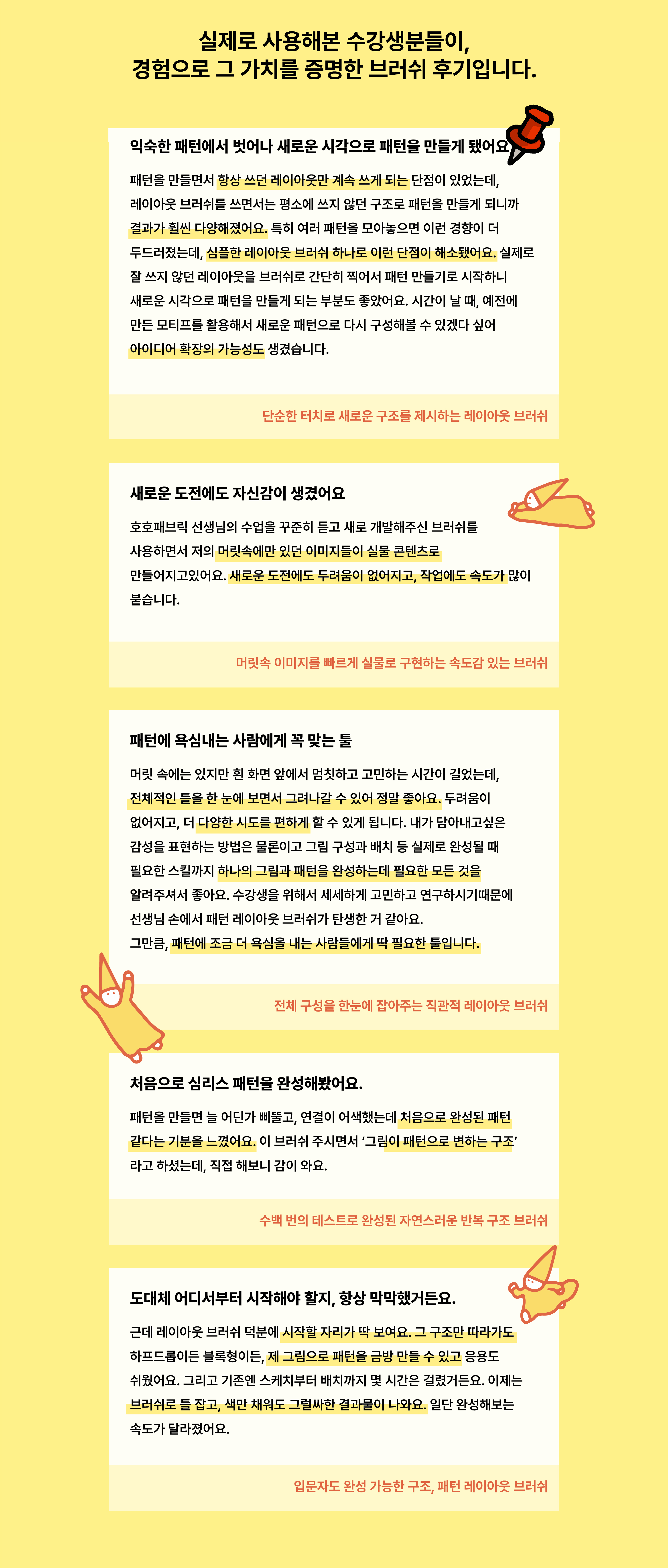 이 패턴 브러시 세트가 단순한 도구를 넘어, 하루를 즐겁게 채워주는 작은 계기가 되기를 바랍니다.