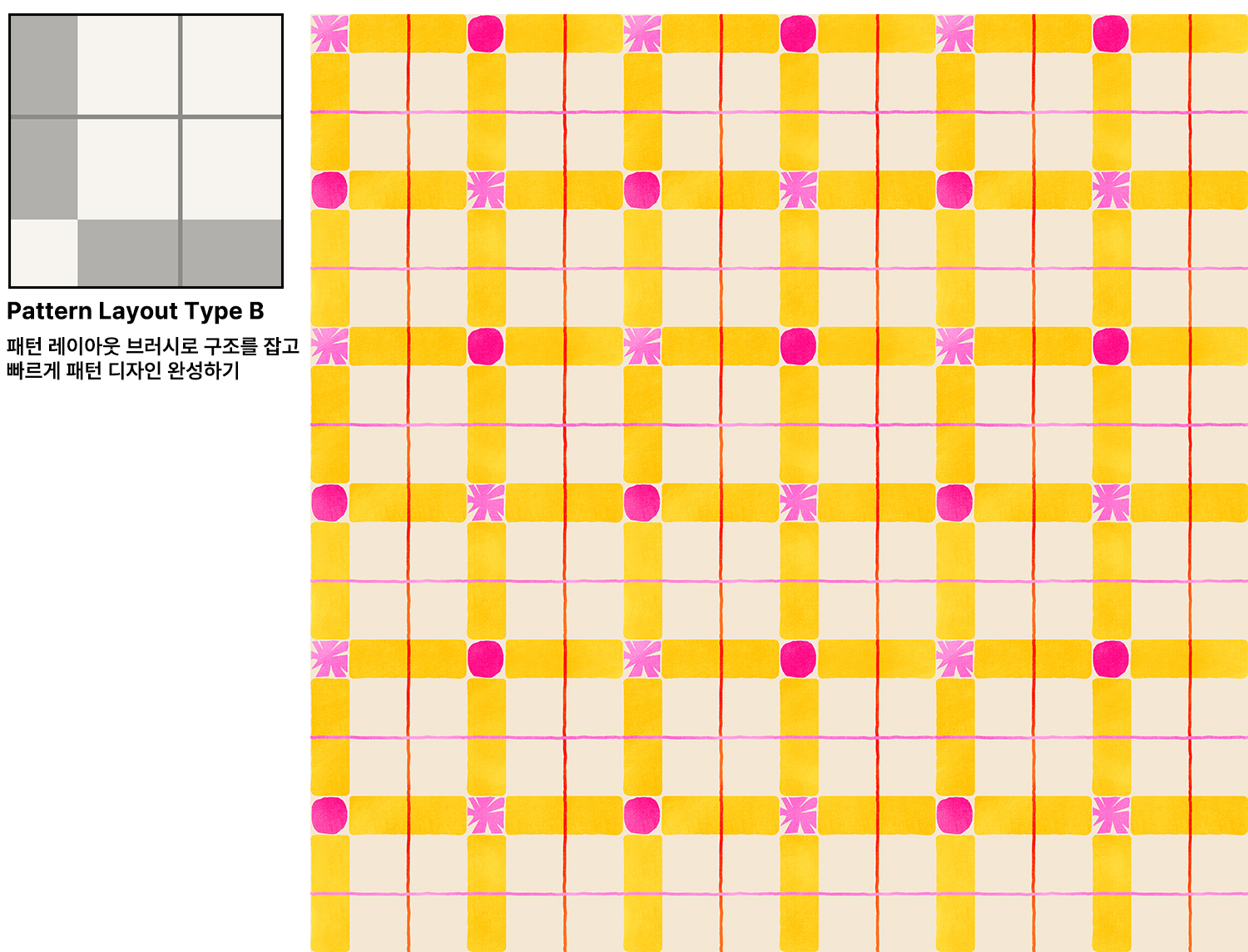 패턴 레이아웃 브러시 기본 골조와 비교해보며 패턴의 구조를 쉽게 이해하실 수 있습니다.