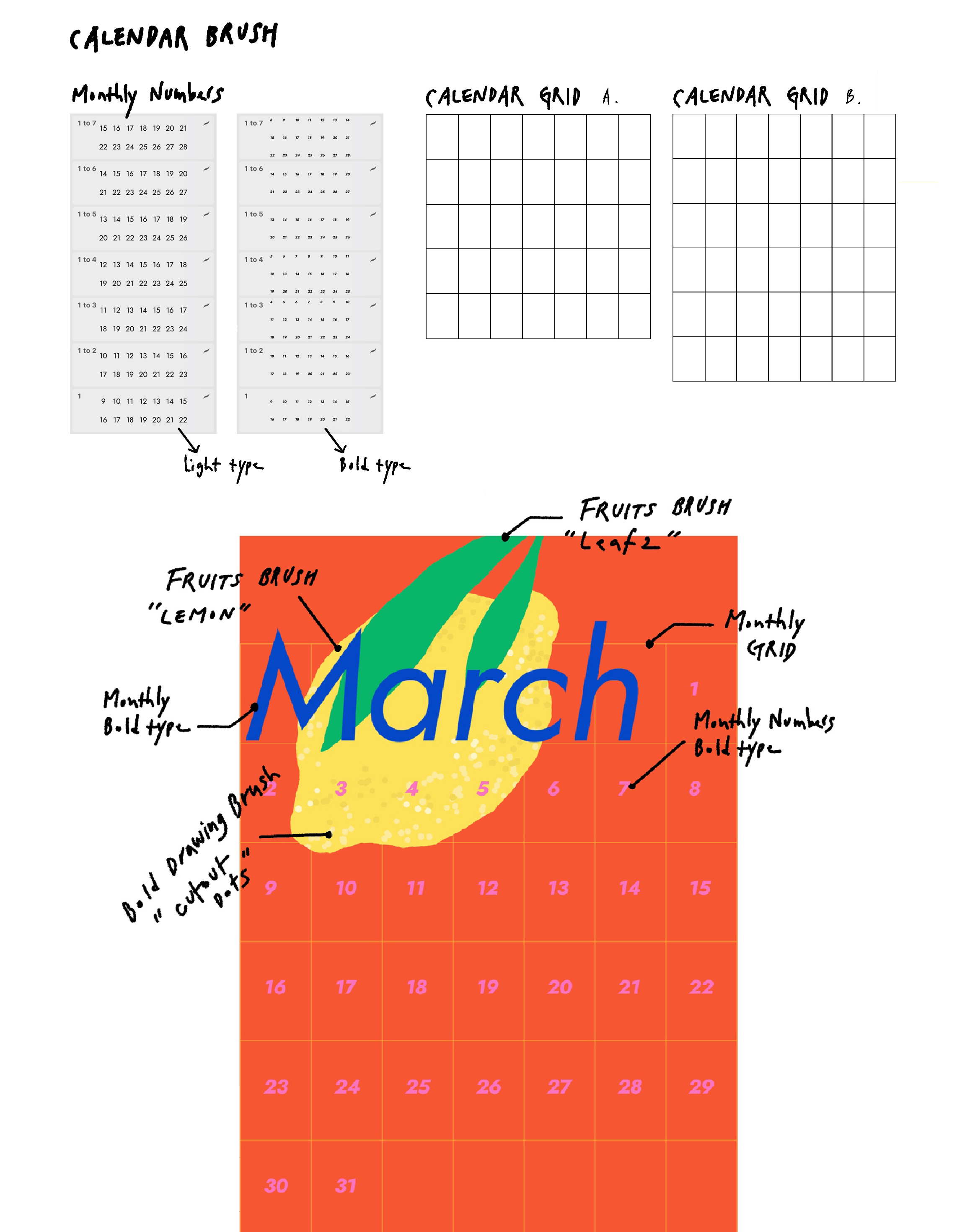 달력을 직접 만들며 브러시끼리의 조합을 연습할 수 있습니다.