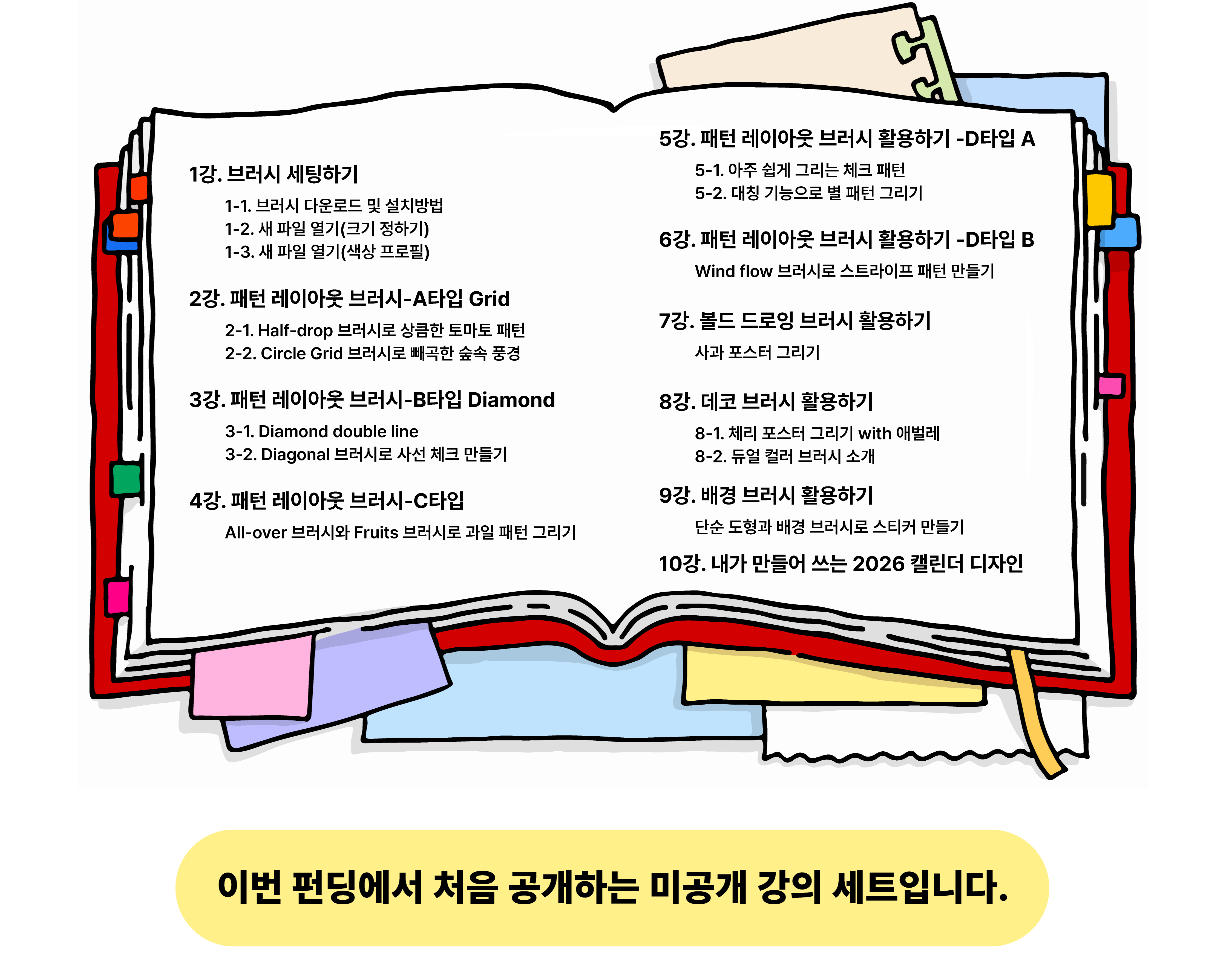 브러시의 핵심 기능부터, 디자인으로의 확장까지- 단계별 핵심 실습 과정을 담았습니다.