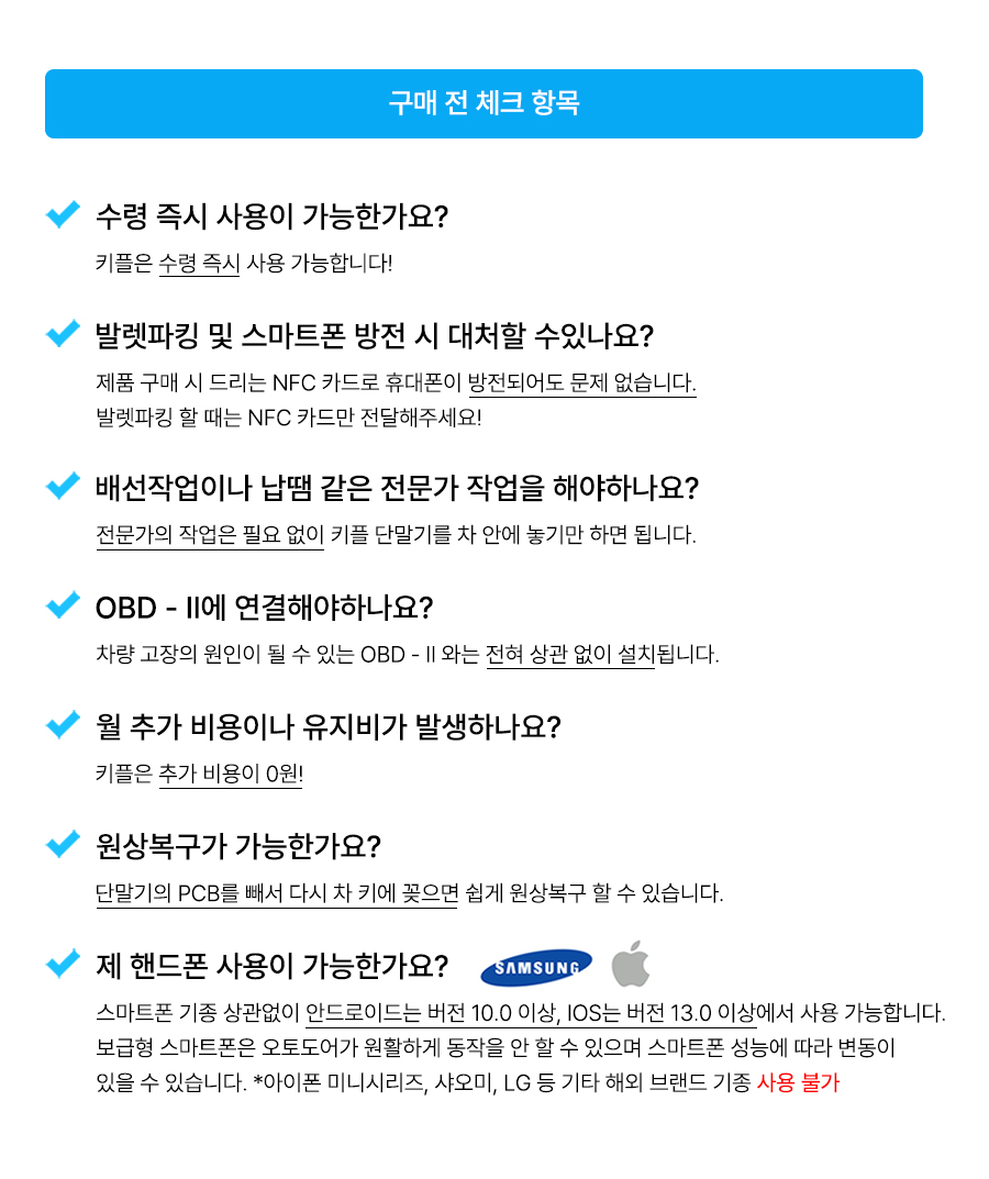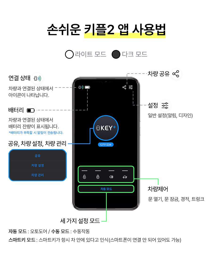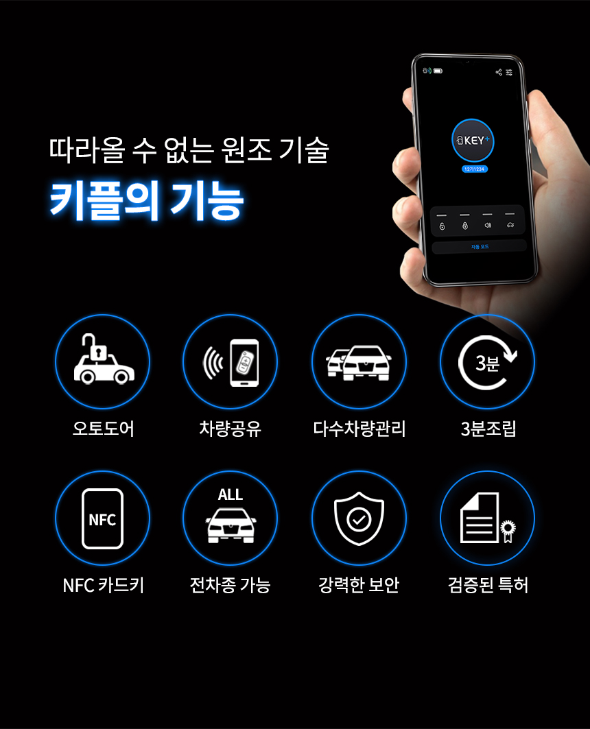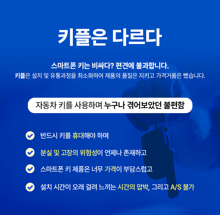 차키 없이 운전하세요! 더 혁신적이고 완벽하게 업그레이드된 '키플2' 차키를 스마트폰 속으로! 가까이 가면 자동 열림 멀어지면 자동 잠김! 전차종O 수령 즉시 사용O