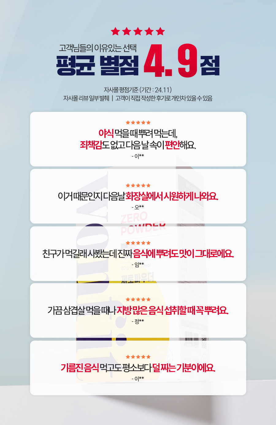 항상 좋은 성분과 압도적인 함량의 제품을 제공해드릴 것을 약속 드리며, 보다 더 새롭고, 혁신적인 제품으로 찾아오겠습니다.