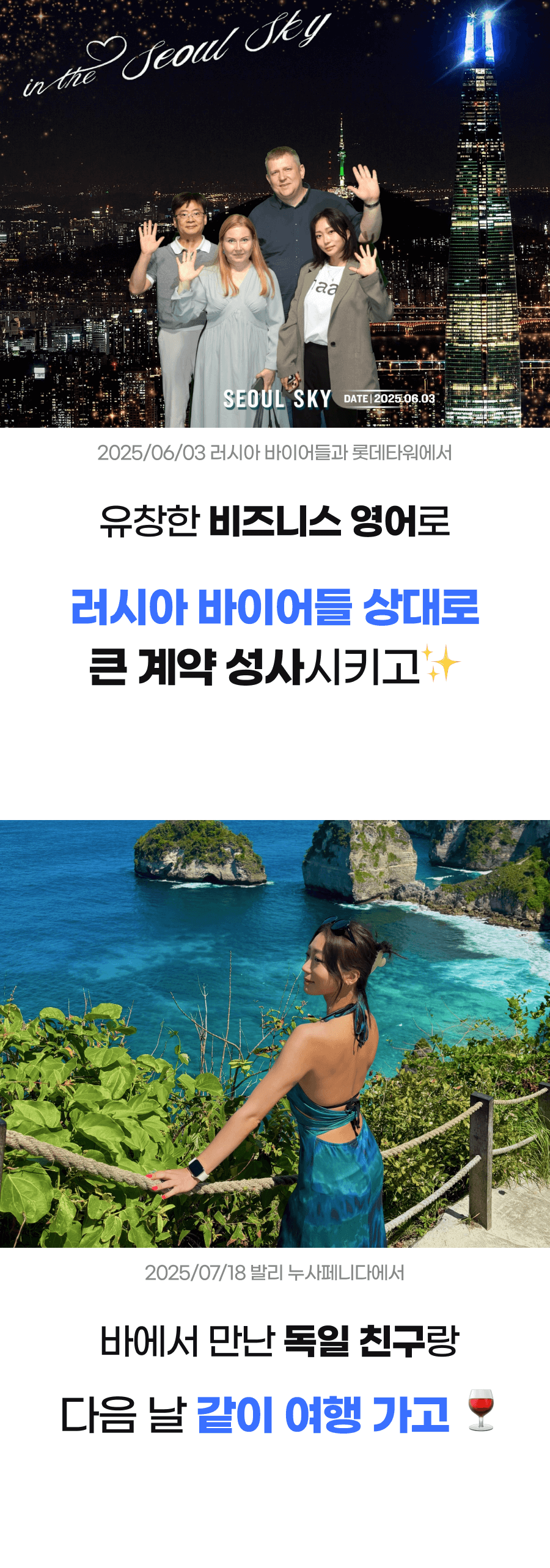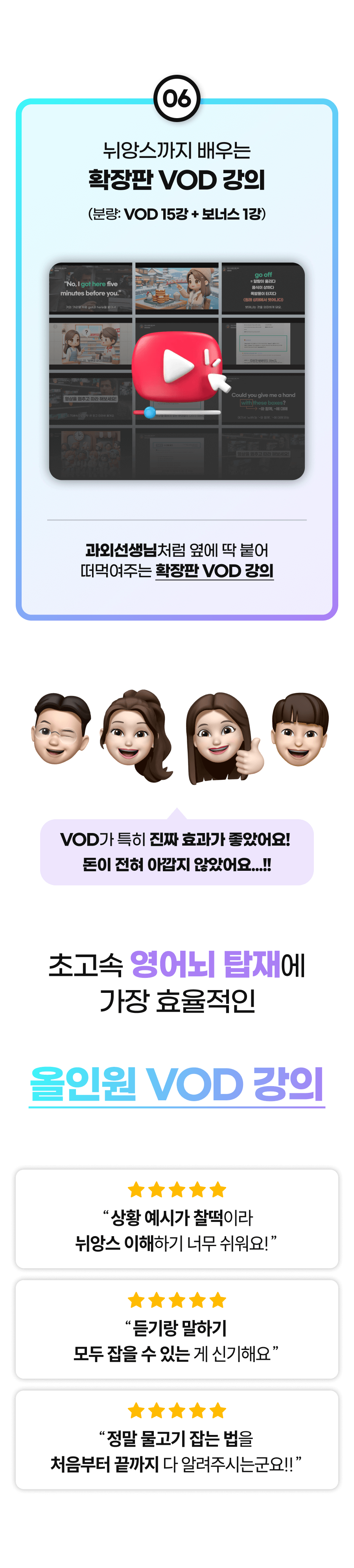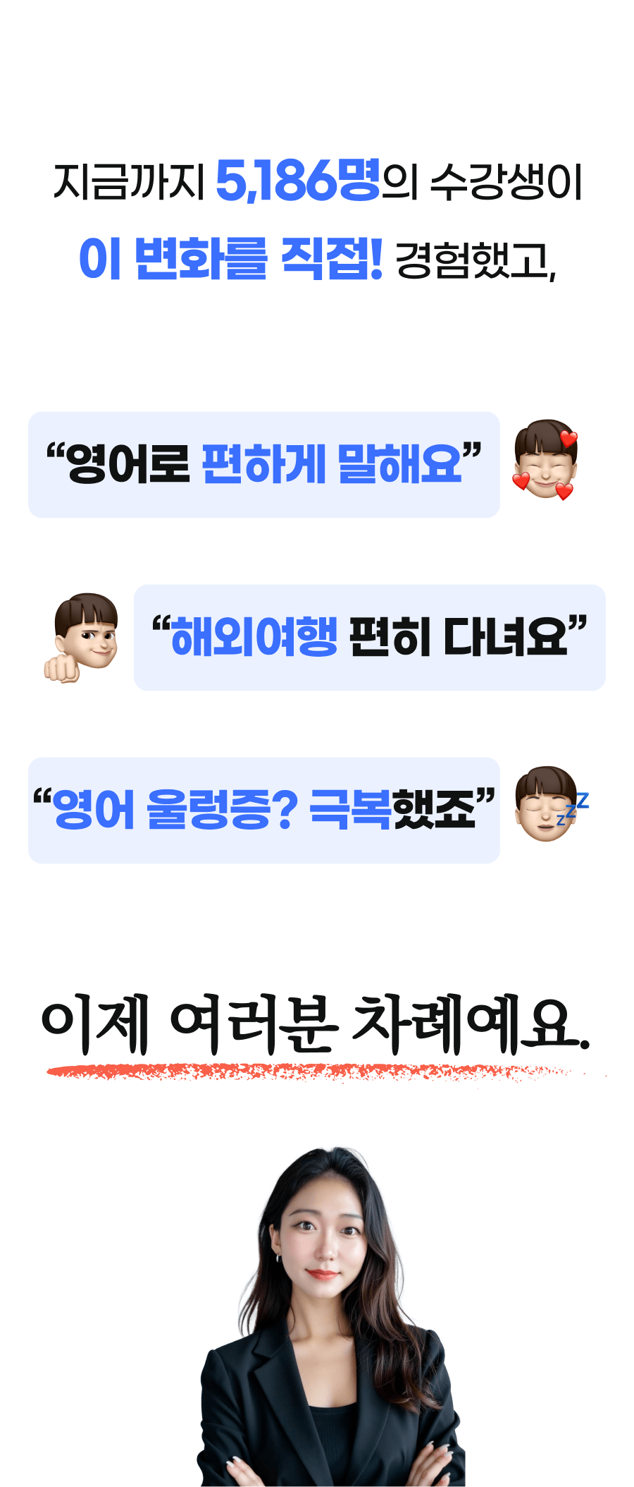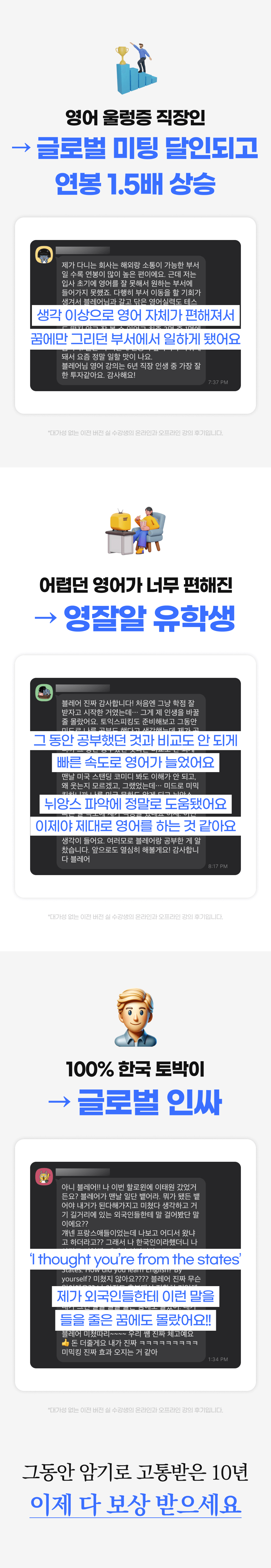 수강생들은 이전에는 상상도 못 했던 영어 회화 능력의 향상을 경험했고, 그들의 성공 사례와 감사의 메시지는 제가 이 방법을 더 많은 사람들에게 알려야 한다는 확신을 주었습니다.
