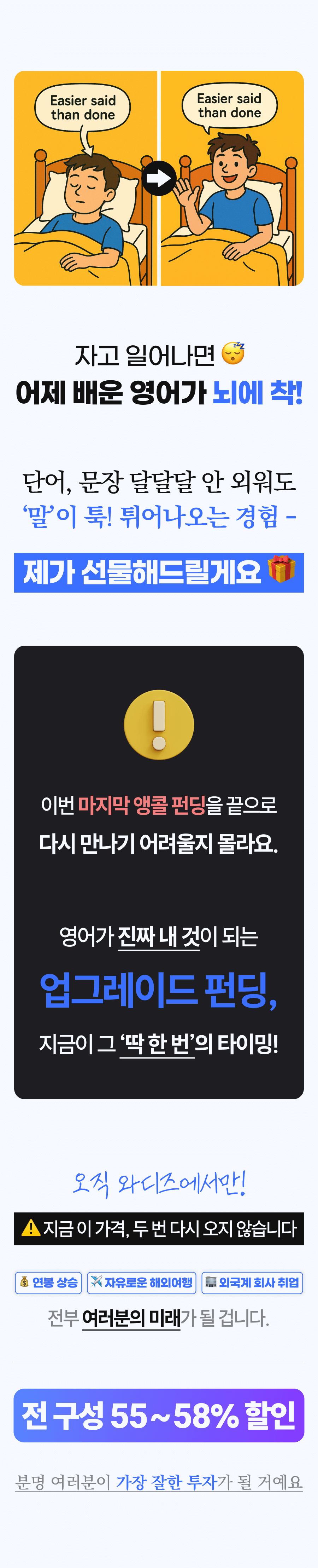이제 저는 이 혁신적인 '무의식 영어 학습법'을 더 넓은 세상에 소개하고 싶습니다. 이 본 펀딩 프로젝트는 단순하게 교육 콘텐츠를 판매하는 것이 아닙니다. 제 열정과 수강생들의 성공 이야기를 통해 많은 이들에게 영어 학습에 대한 새로운 희망과 가능성을 제시하는 프로젝트예요.