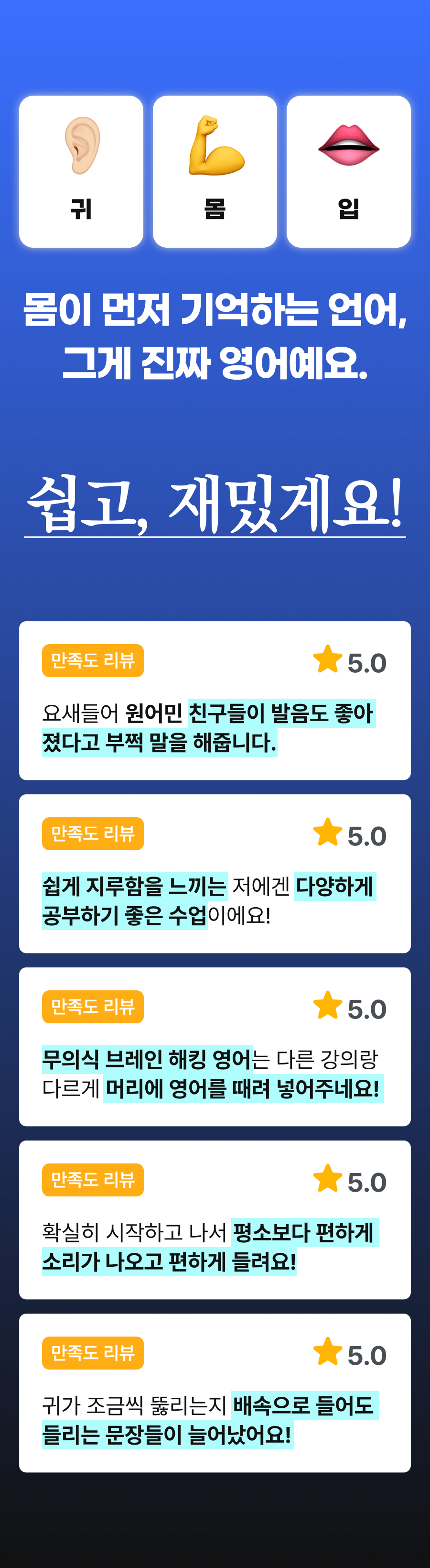 앞으로 더 좋은 영어 교육, 더 효과적인 영어 교육을 위해 힘쓰도록 할게요!
