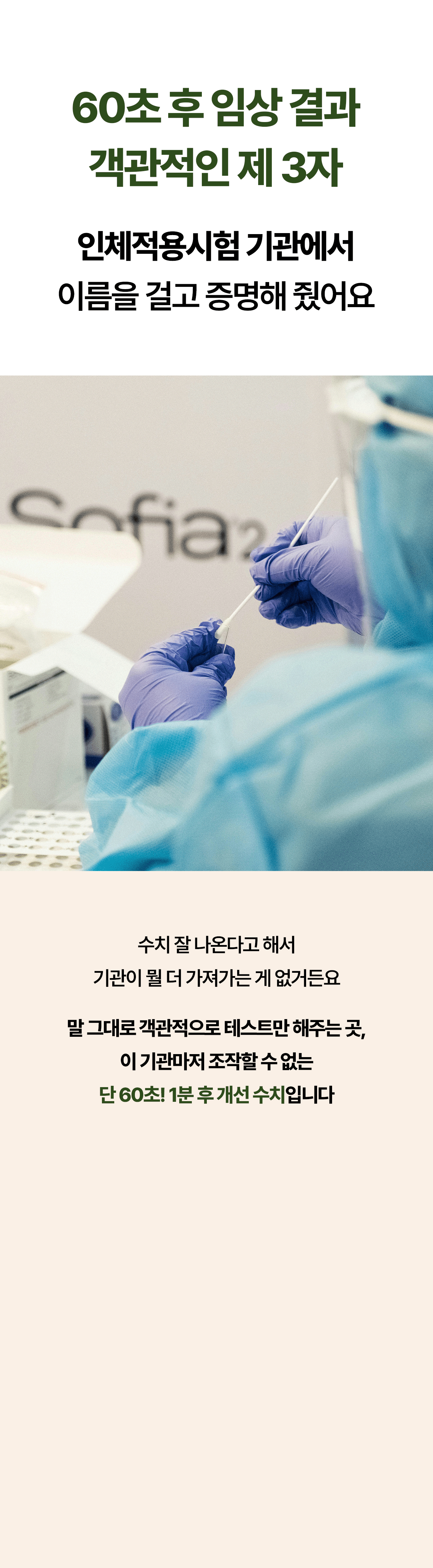 60초 사용 후 결과를 보겠다고 말씀 드리면, 인체적용시험을 진행하는 기관에서는 1초의 여유도 두지 않고 60초 안에서 모든 걸 컨트롤 합니다. 임상 결과가 정말 좋게 나왔어도 1초라도 시간을 어겼다면 처음부터 다시 진행해야 해요.