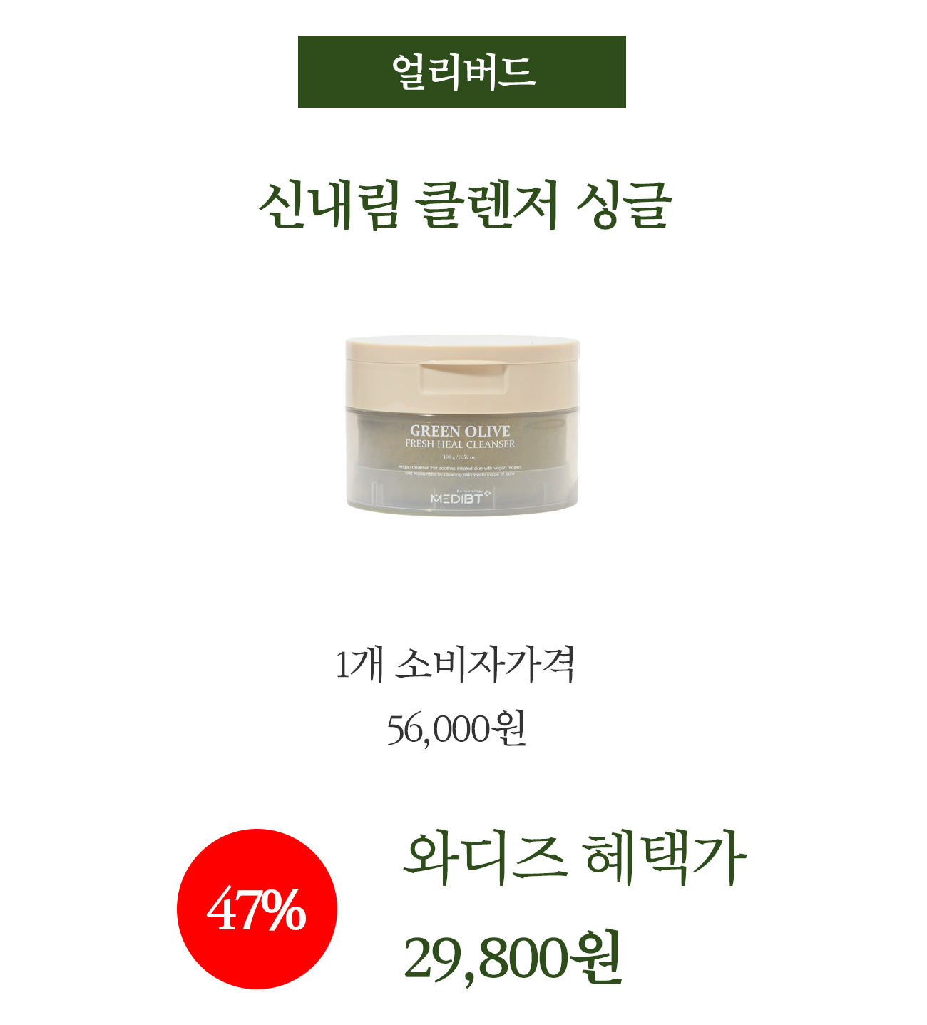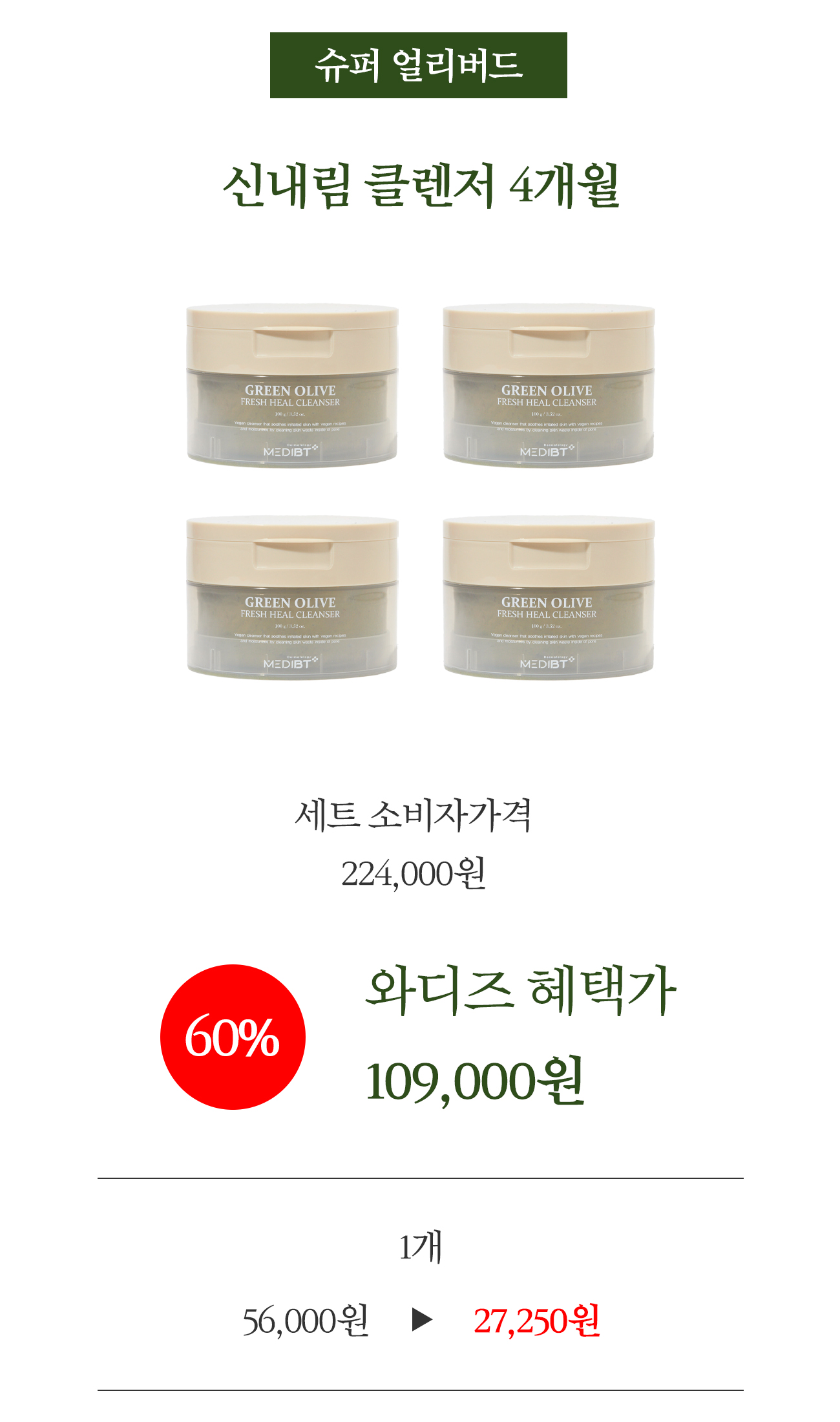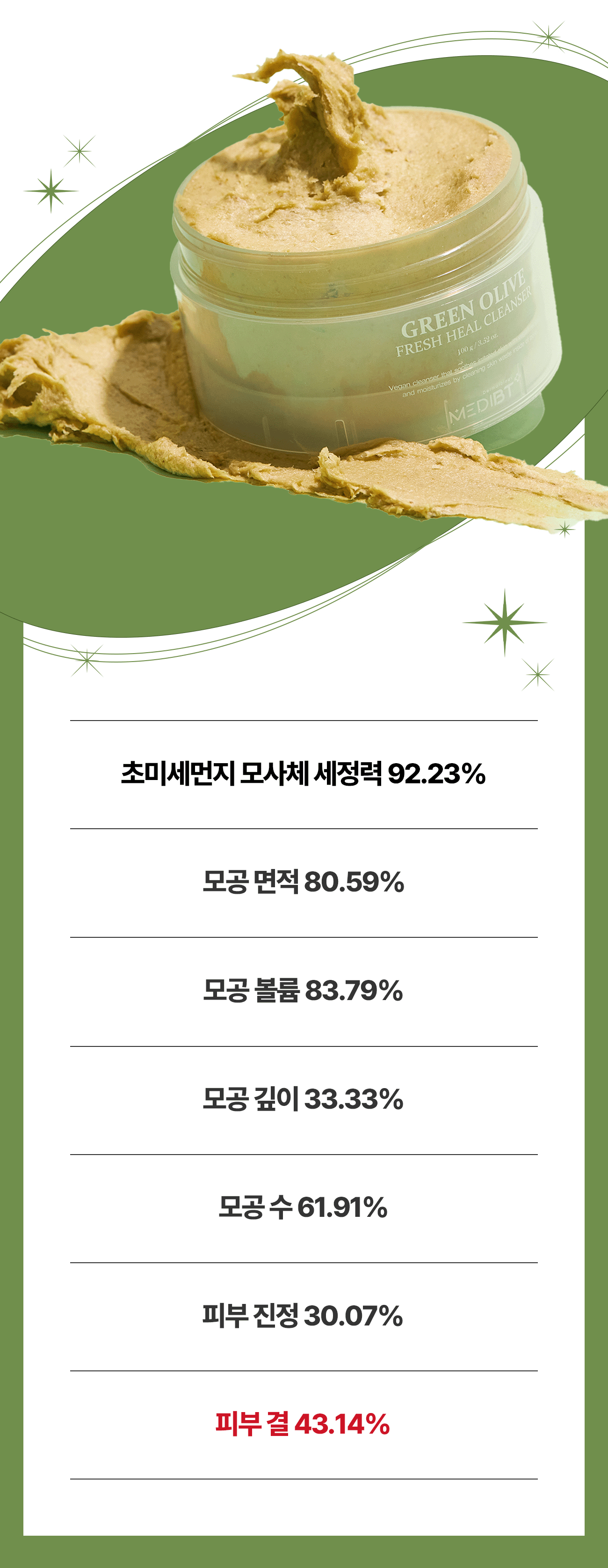 신이 내린 게 아니라면 설명이 되질 않는 60초 후 임상 결과를 받기 전 정한, 신내림 클렌저의 정확한 이름은 '그린 올리브 프레시 힐 클렌저'입니다.
