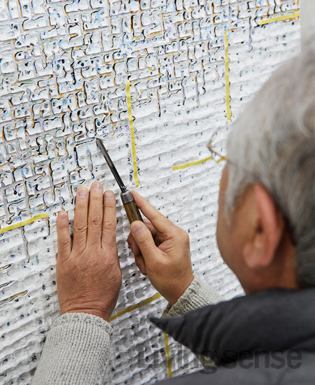 켜켜이 축적된 표면을 끌칼로 긁어냅니다.