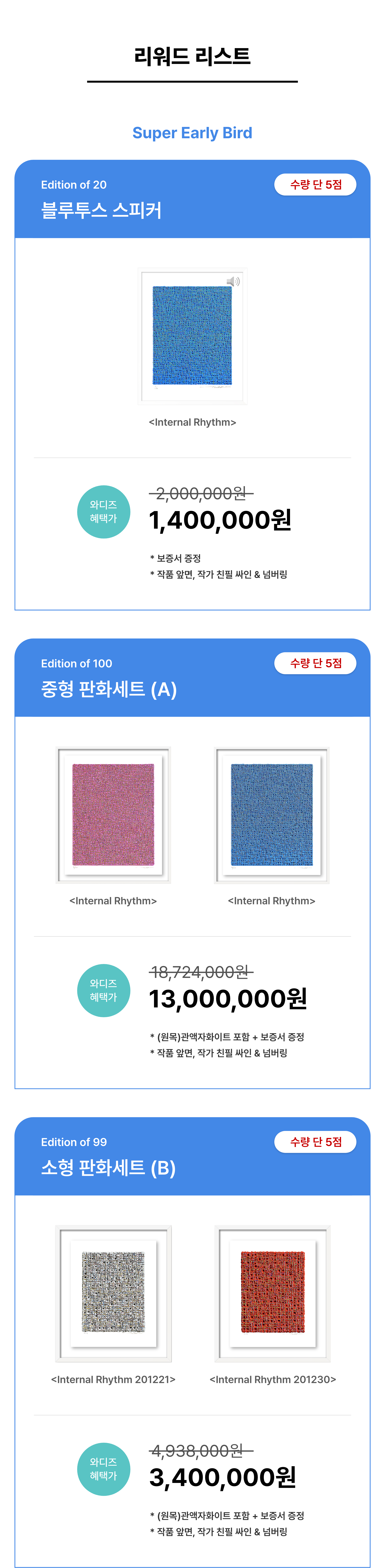 서포터님의 소중한 펀딩금은 이번 김태호 작가 프로젝트의 제작부터 배송까지 모든 과정에 사용됩니다. 더불어, 이어지는 판화 프로젝트의 연구와 기획에도 큰 힘이 되니, 다양한 작가님들과 더 좋은 작품을 만들 수 있도록 많은 격려와 응원 부탁드립니다! 모든 서포터님들께 다시 한번 감사드립니다.
