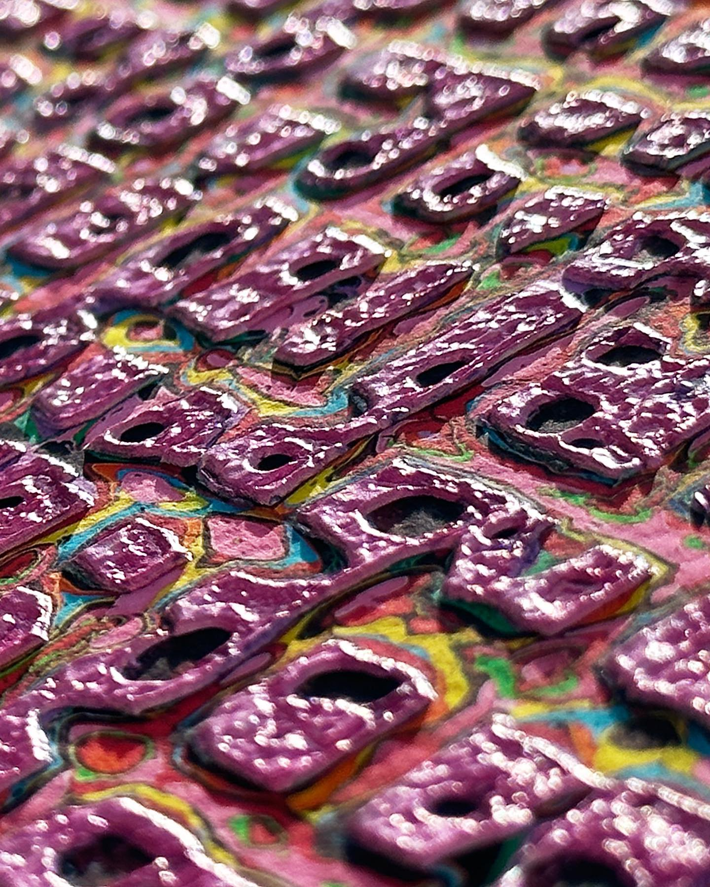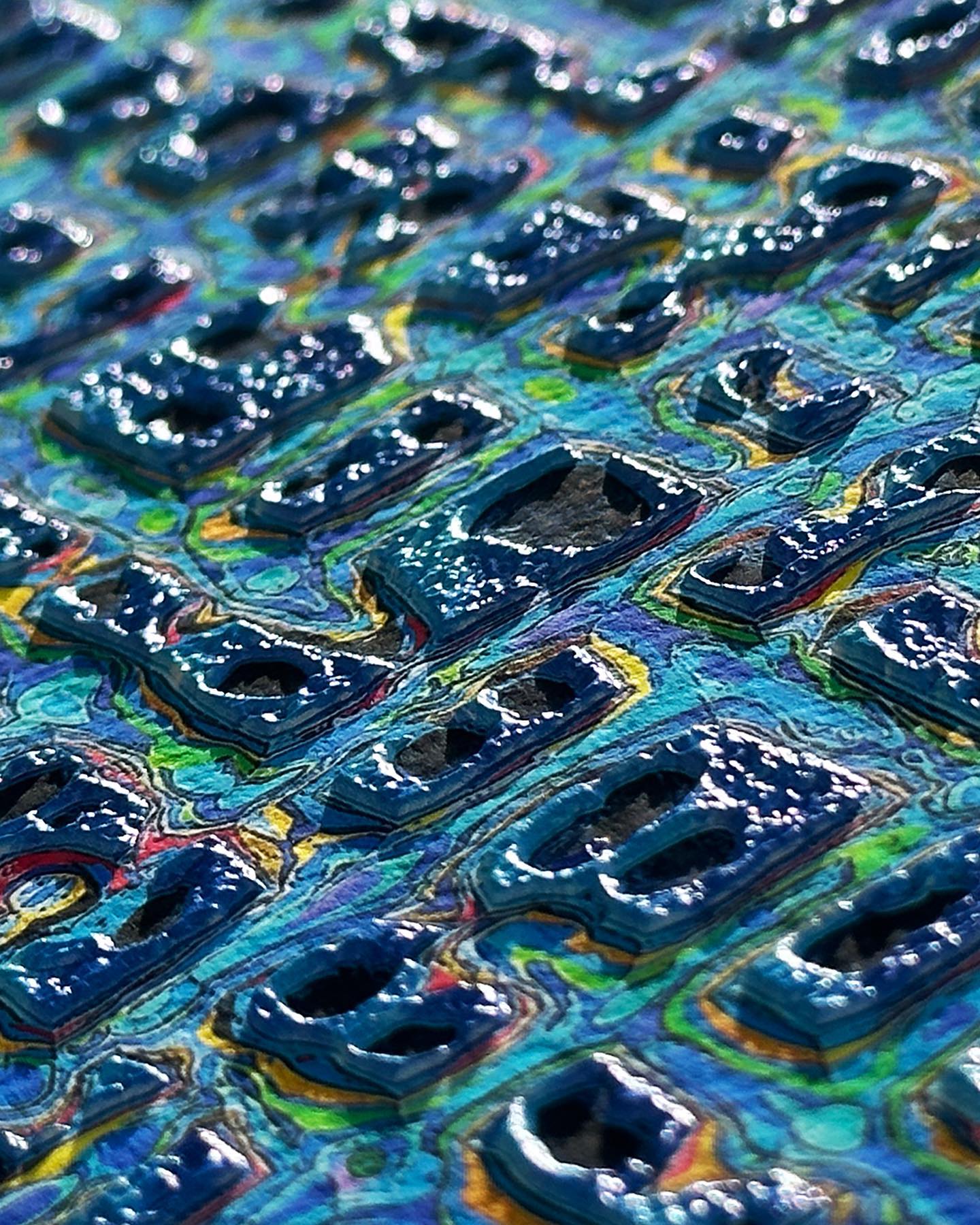선을 따라 다양한 색의 물감을 층층이 쌓고,