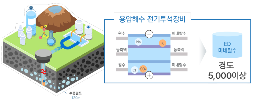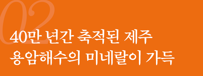 제주섬의 현무암층 밑에 존재하는 바닷물입니다. 화산 활동에 의한 용암이 굳어서 만들어진 현무암층에는 구멍이 송송 나있는데요, 이 현무암층이 천연 필터 역할을 하기 때문에 그 안에 40만년 된 용암해수는 미네랄 영양소가 풍부하다는 특징을 가지고 있어요. - 왜 몸에 좋을까요?