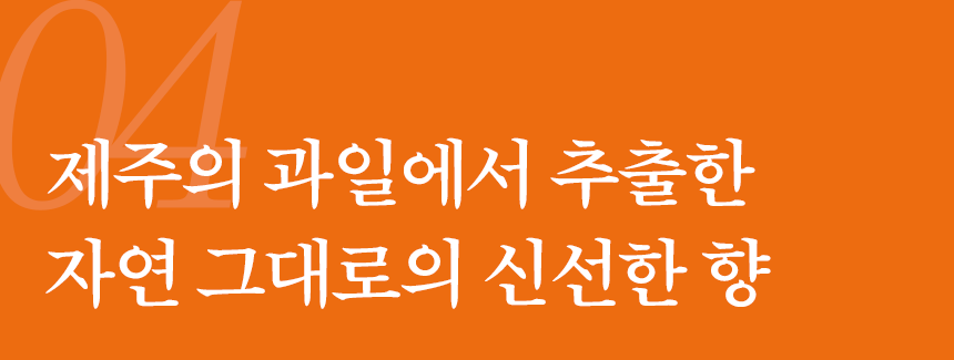 이렇게까지 향이 좋을 수 있나 싶으실 거라 미리 말씀드리자면, 모든 향은 제주도 현지에서 자란 레몬, 한라봉, 감귤 과일에서 향을 추출하여 더했답니다.
